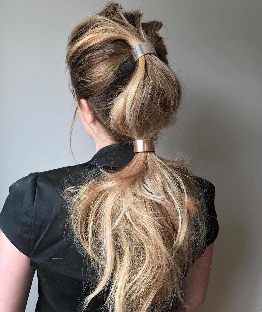 - Далее решают: оставлять их распущенными, или, используя расческу, собрать в хвост, чтобы получить небрежный пучок.