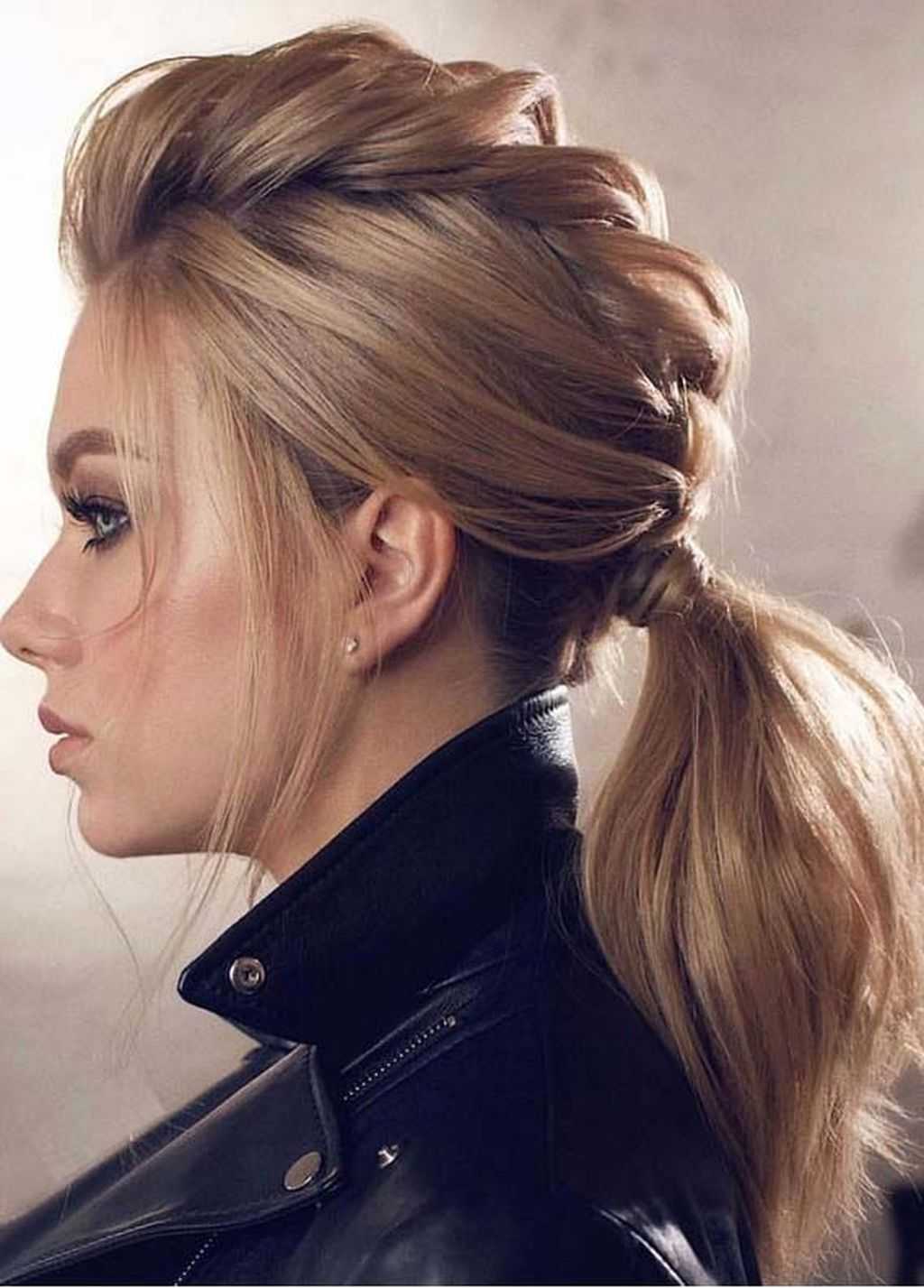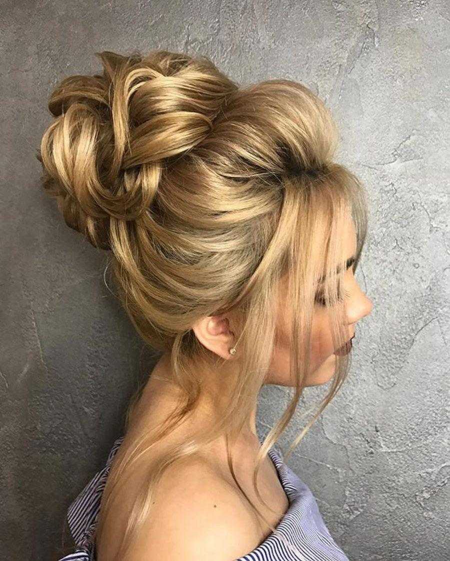 Прическа для торжественных случаев, которая поможет выглядеть визуально выше. Высокие пучки идеально подходят обладательницам волос одинаковой длины, которые не будут выпадать из прически. Тренд последних сезонов – пучки с элементами плетения. Косички, которые аккуратно вплетаются в пучок, великолепно выглядят в деловых образах.
