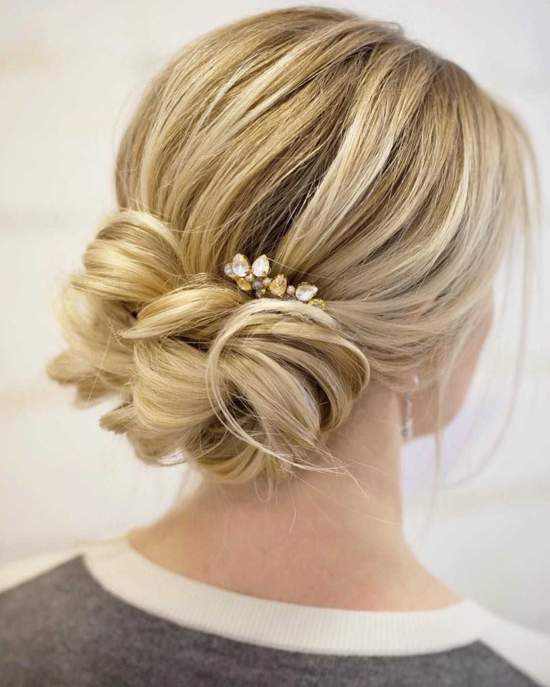 Сделав низкий пучок на короткие, на средние или на длинные волосы своими руками, можно поэкспериментировать с образом. Ведь он будет как строгим, лаконичным и деловым, так и небрежным, романтичным. Для создания можно использовать ленты, тканевые ободки, а также устройства для стайлинга.