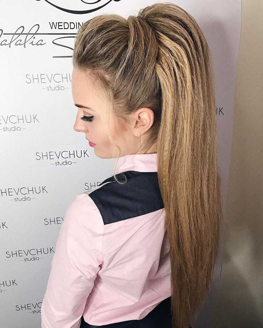 Хвост бывает низким, высоким, сделанным на бок, конским и т. д. Конский классический хвост наиболее выгодно смотрится на прямых длинных волосах.