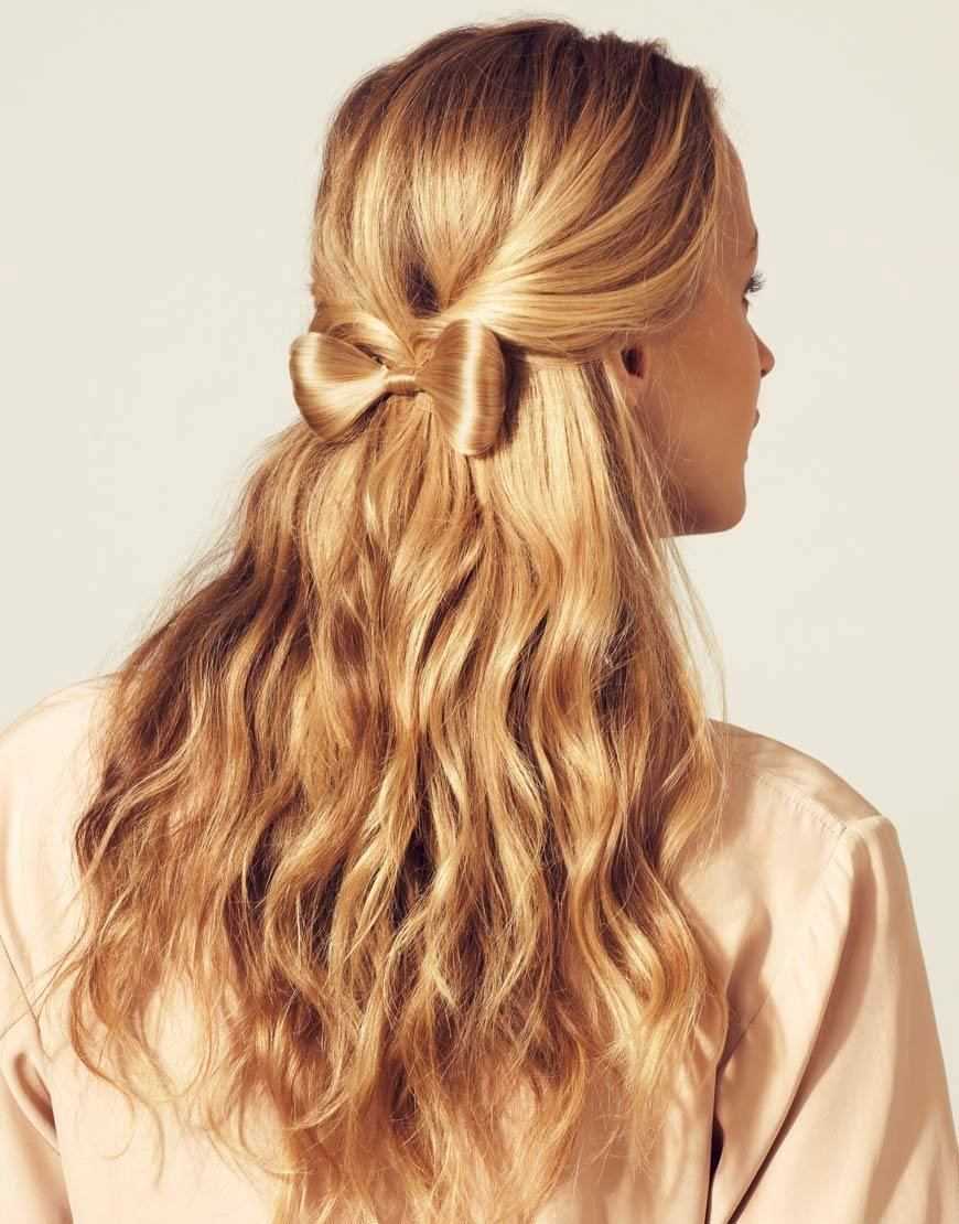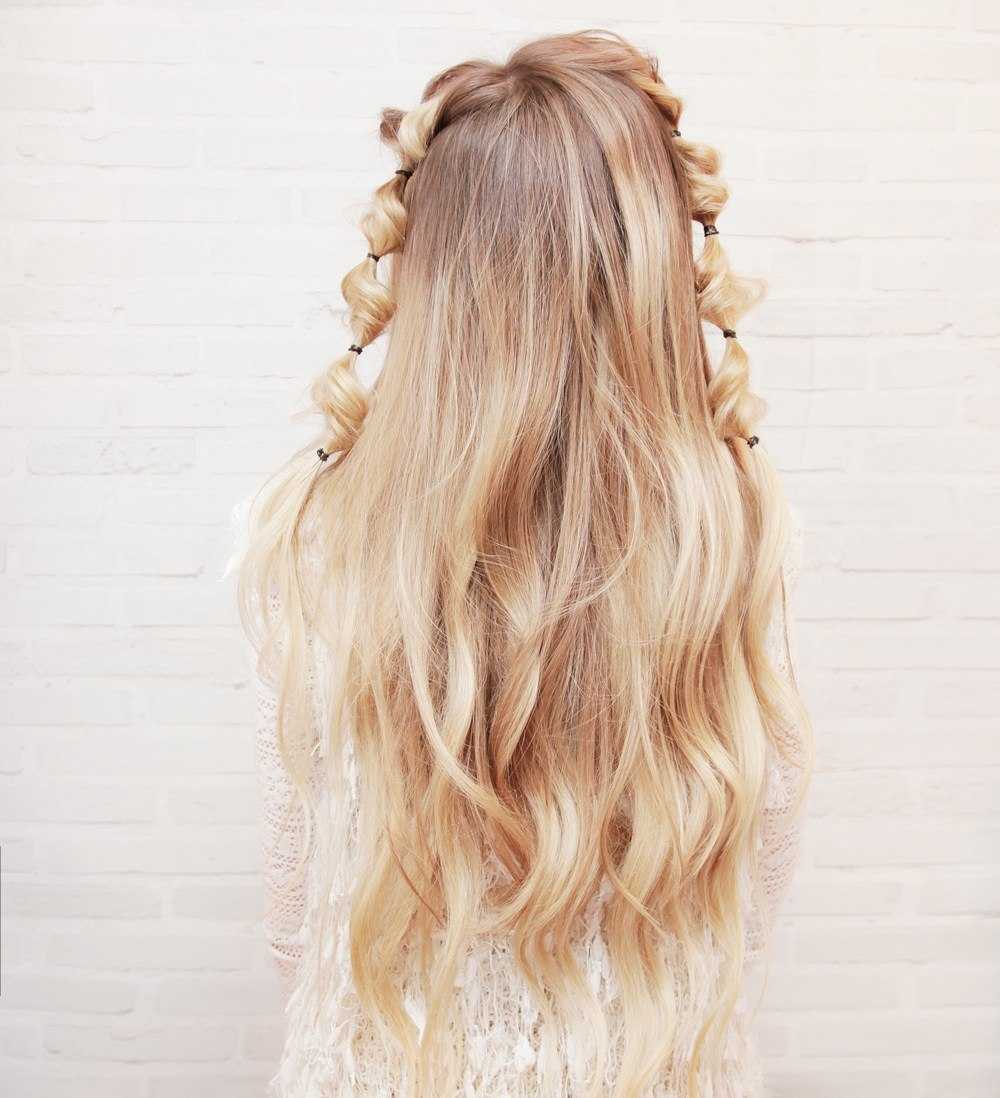 Для особенных праздничных событий должна быть и соответствующая укладка. Самой популярной укладкой для такой длины, безусловно, считаются завитые локоны. Сделать это можно различными способами: при помощи бигуди, утюжка или плойки. При дополнении роскошной укладки элементами декора, получится невероятная укладка для любых мероприятий. Если девушка предпочитает собранные укладки, то прекрасным вариантом станет конский хвостик с бантиком из волос. Для выполнения нужно отделить небольшую часть волос сверху головы и заплести обычный хвостик, при этом остальные волосы остаются свободными. Теперь выполнить петельку из волос, закрепить ее небольшой прядью волос и шпильками. Затем расправляем обе стороны бантика и закрепляем невидимками, а оставшийся хвостик обвиваем вокруг плетения и накручиваем.