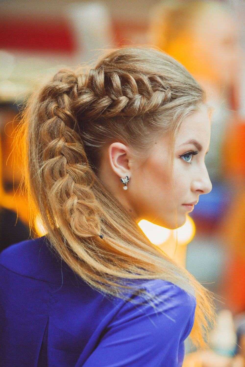 Косы могут обрамлять пробор либо выполняться на распущенных волосах. Заплетенные косы выглядят аккуратно, ухоженно, привлекательно. Хотя, в последние годы в тренде небрежные косы с выбивающимися прядями.