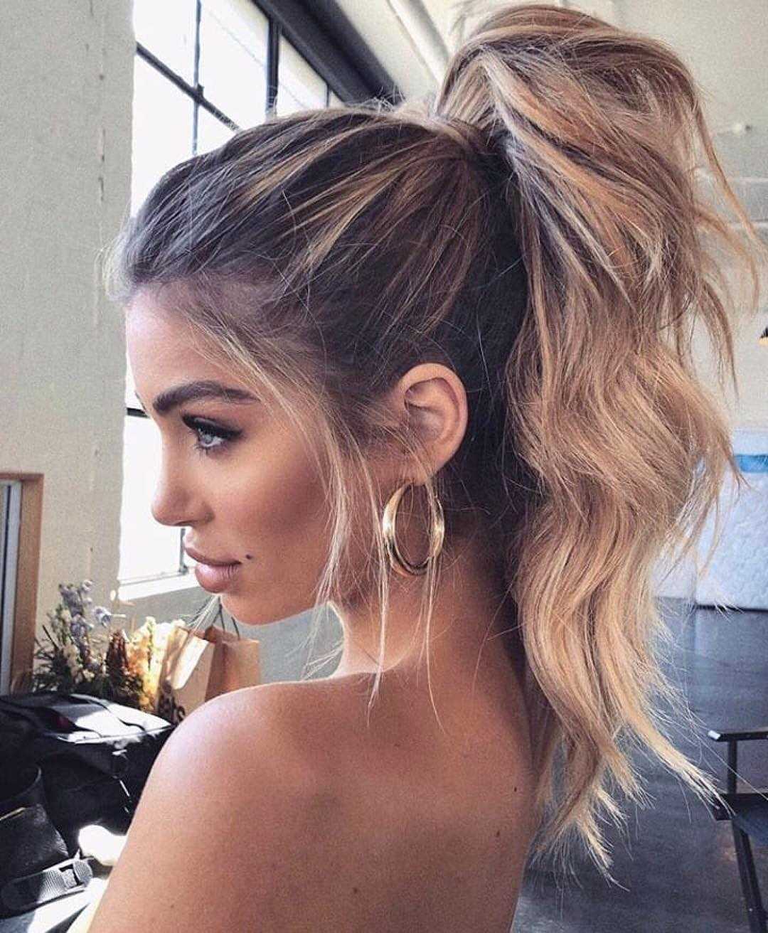 - Правило № 3 — соберите волосы в высокий хвост после мытья. Когда вы помыли их и высушили, если есть такая возможность, соберите их в высокий хвост на 30 минут. Для этого наклоните голову вниз, соберите все локоны ближе ко лбу, если это возможно, и завяжите в не тугой хвостик. Если длина не позволяет собрать все, сделайте это с верхней частью волос. Походите с такой прической 30 минут или больше. Можете сделать его на ночь. Главное — собрать весь объем как выше и не стягивать туго. После вы получите супер пышную укладку.