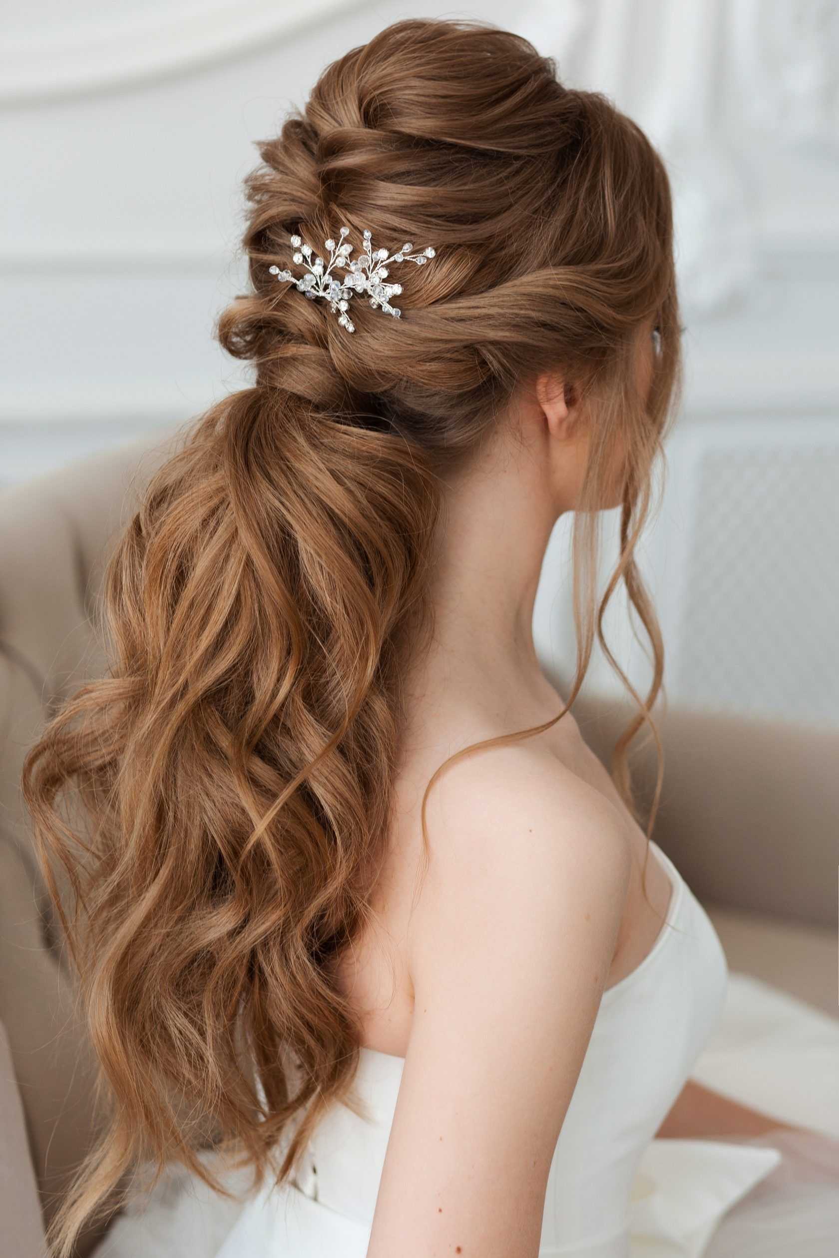 Многие примеры свадебных причёсок подразумевают наличие начёса, и в этом случае следует подбирать вид укладки, которая не будет перегружена подобным элементом. В большинстве вариантов начёс смотрится сдержанно и лишь изысканно преображает причёску, но сильно увлекаться с этим стилисты также не советует. Среди множества идей можно выделить небольшой начёс в верхней части головы, который красиво дополняет косу водопад или «мальвинку». Не менее популярны хвосты с начёсом, пучки с начёсом и еле заметный начёс у корней, который придаёт причёскам с распущенными волосами дополнительный объём.