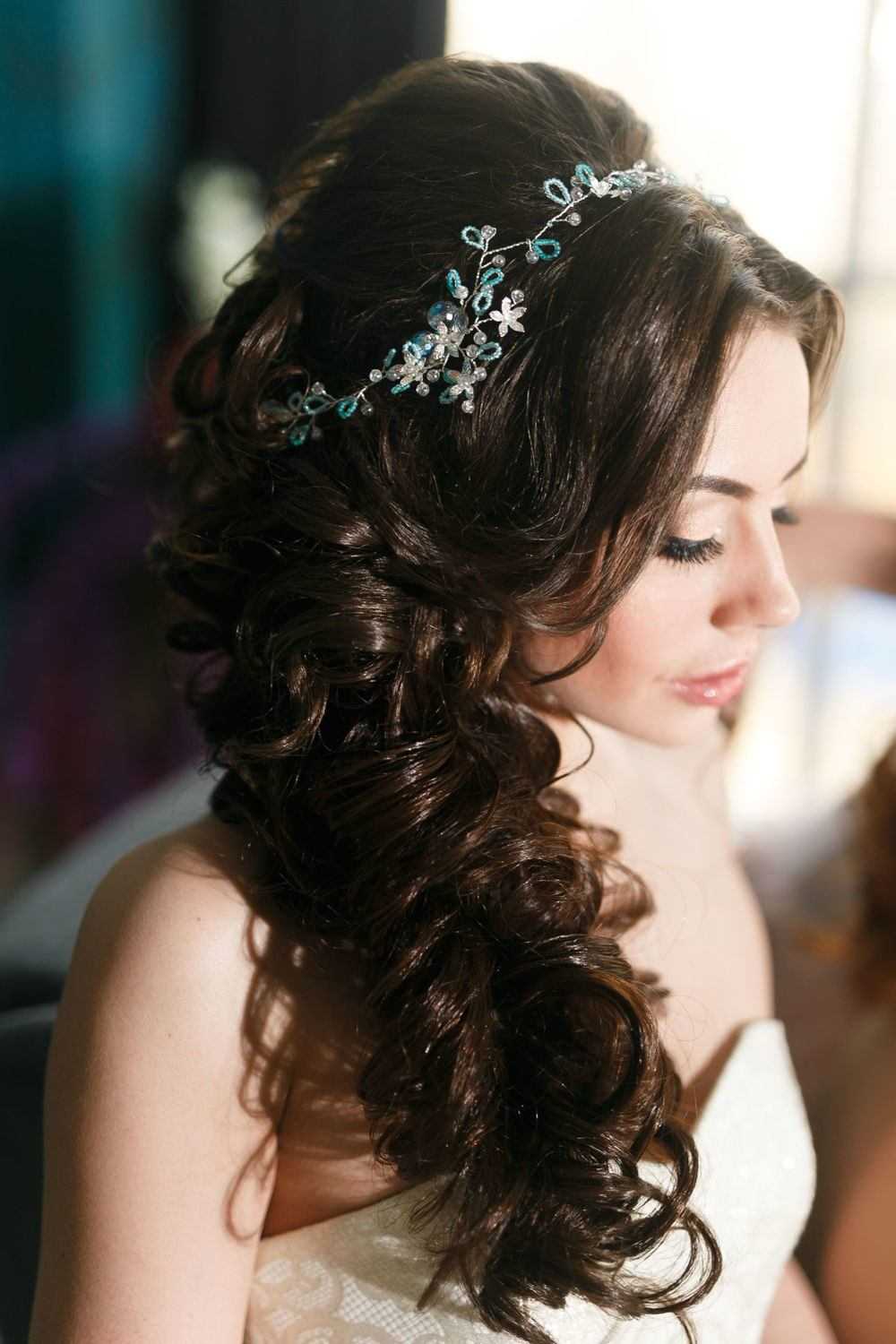Не менее привлекательно будет смотреться хвост с объёмом в верхней части головы и свободными прядками, причёска в греческом стиле с оригинальной лентой или обручем либо романтический «венок», который можно дополнительно украсить красивой заколкой.