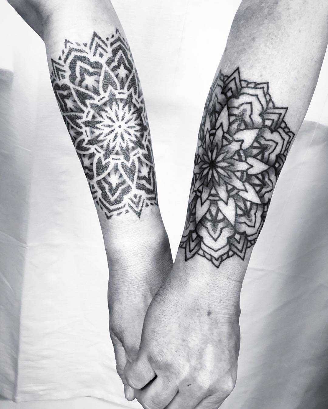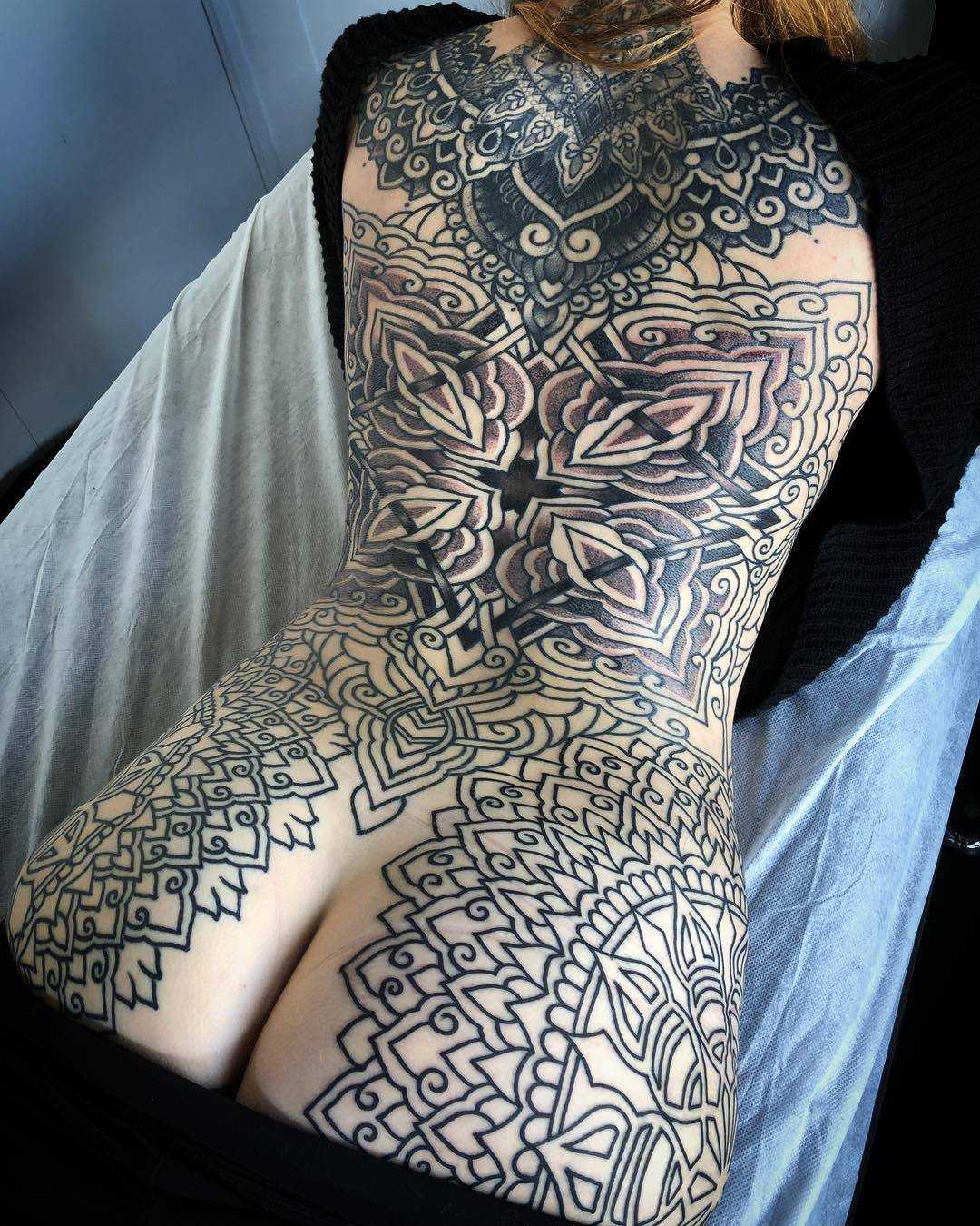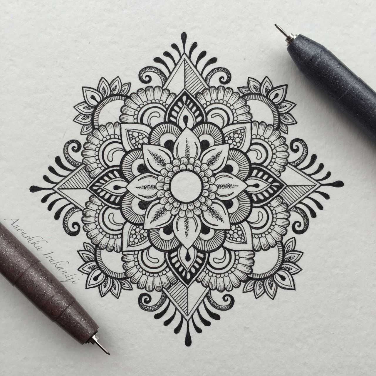 - Мандалы, славянские руны, древнегреческие мотивы наносятся только черным цветом. Отличительная особенность монохромной картинки – четкость, точность, тщательная прорисовка каждой детали. Она будет всегда смотреться красиво и интересно.