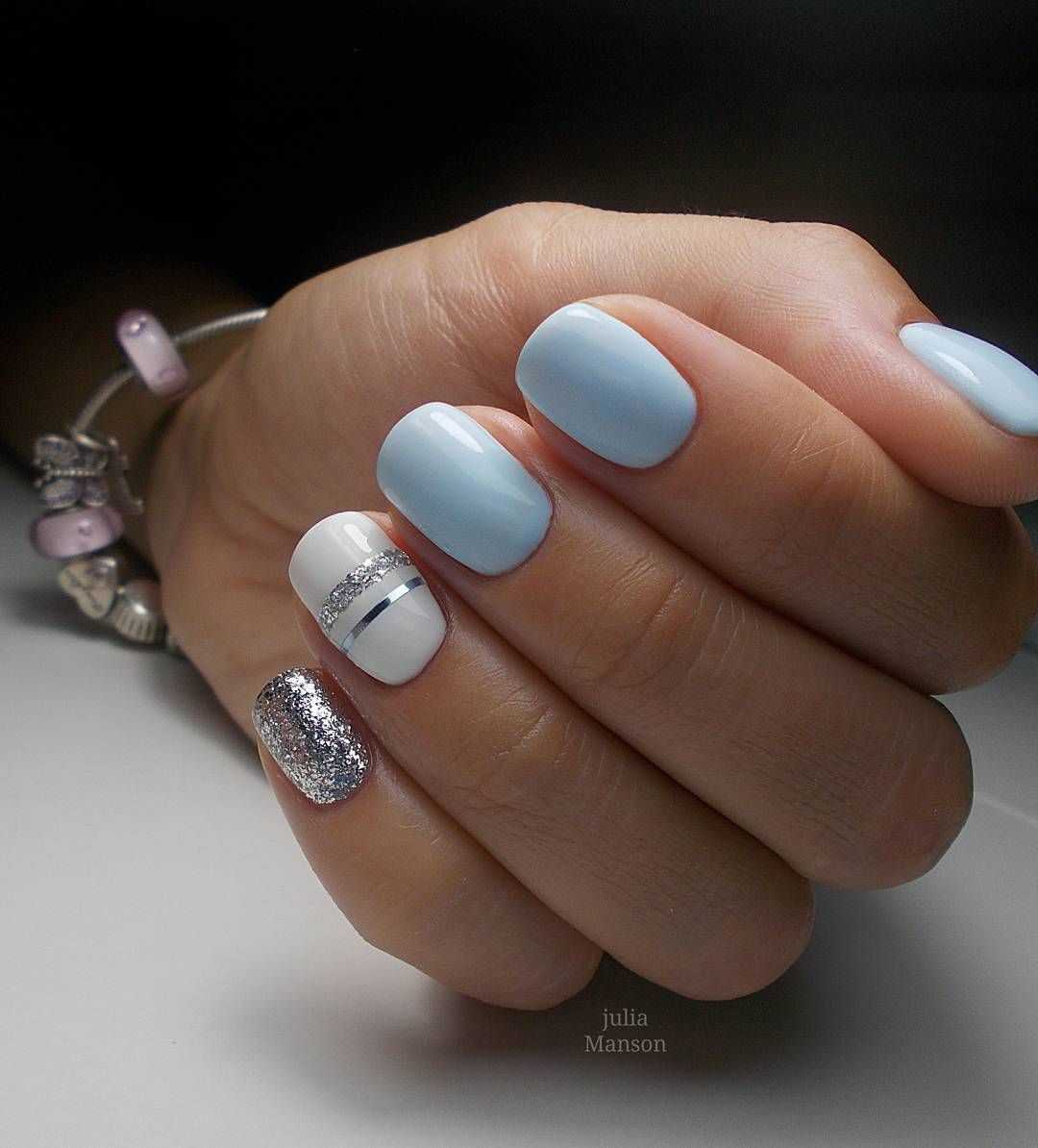 Варианты сочетания с бирюзовым лаком позволяют акцентировать внимание на мелких деталях и создавать потрясающие идеи дизайна на морскую или зимнюю тематику