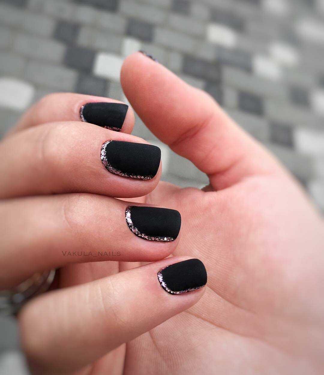 Сегодня актуально сочетание серебристого блеска и матового лака или даже бархатистой поверхности на коротком ногте.
