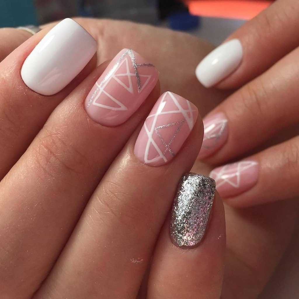 Маникюр можно традиционно стилизовать и украсить при помощи рисунков, к чему, чаще, прибегают мастера. В случае с серебряным маникюром — это не исключение, и в этом случае он смотрится более оригинально. Замечательными вариациями в сочетании с серебряным маникюром в этом году тематические композиции, геометрия и абстракция. Геометрический рисунок должен быть отчетлив и односложен, в чем его главное отличие предложенных вариантов в прошлом году. Для этого применяются скотч-лента для изображения серебряных линий на ярком основном фоне, орнаменты, которые наносятся лаком, звезды, сложные эскизы на фоне серебра, в некоторой степени сходные с узорами в калейдоскопе. Великолепно будет смотреться ажурная вязь, завитушки, которые будут невольно напоминать новогодний узор на стекле, кружевной этюд. Практически всегда в моде цветочные мотивы, но для 2021 года они должны будут выполнены профессионально тонкой кисточкой, с особой нежностью и изяществом, которые отражаются в рисунке.