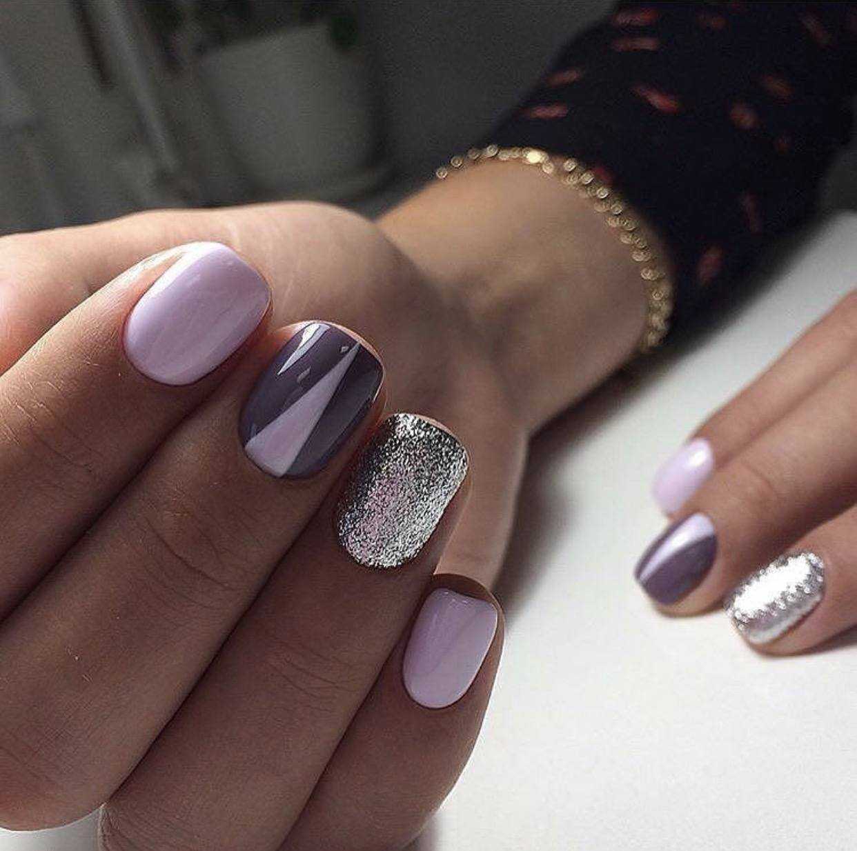 Дополнение серых ноготков фиолетовым напоминает по виду волшебную дымку, которая мягко расстилается над водной гладью во время заката.