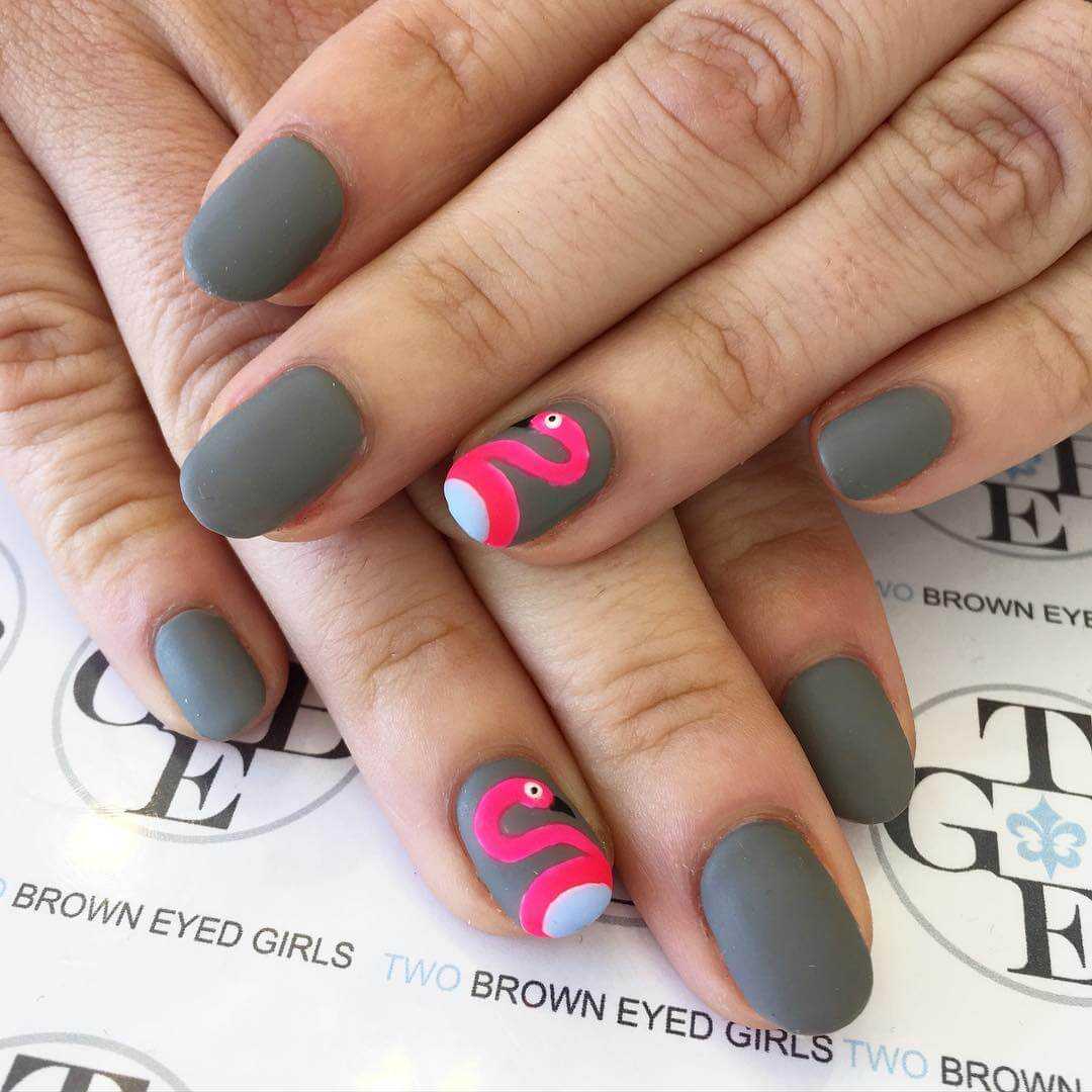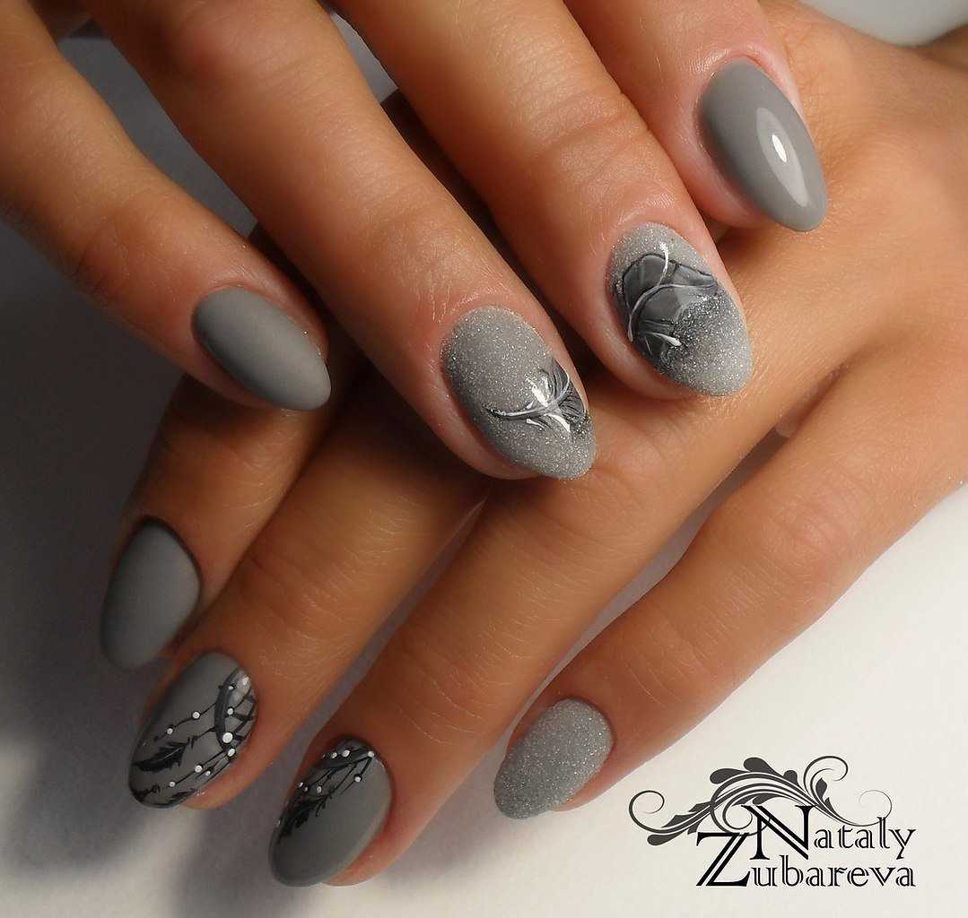 Матовое покрытие позволит вам выделиться из толпы, но не смотреться чересчур экстравагантно. Серый матовый маникюр лучше выполнять в темных оттенках, так дизайн будет выглядеть утонченно и изящно. Такой нейл-арт выбор уверенных в себе особ. Бархатистый дизайн в светлых тонах признак романтично настроенных девушек.