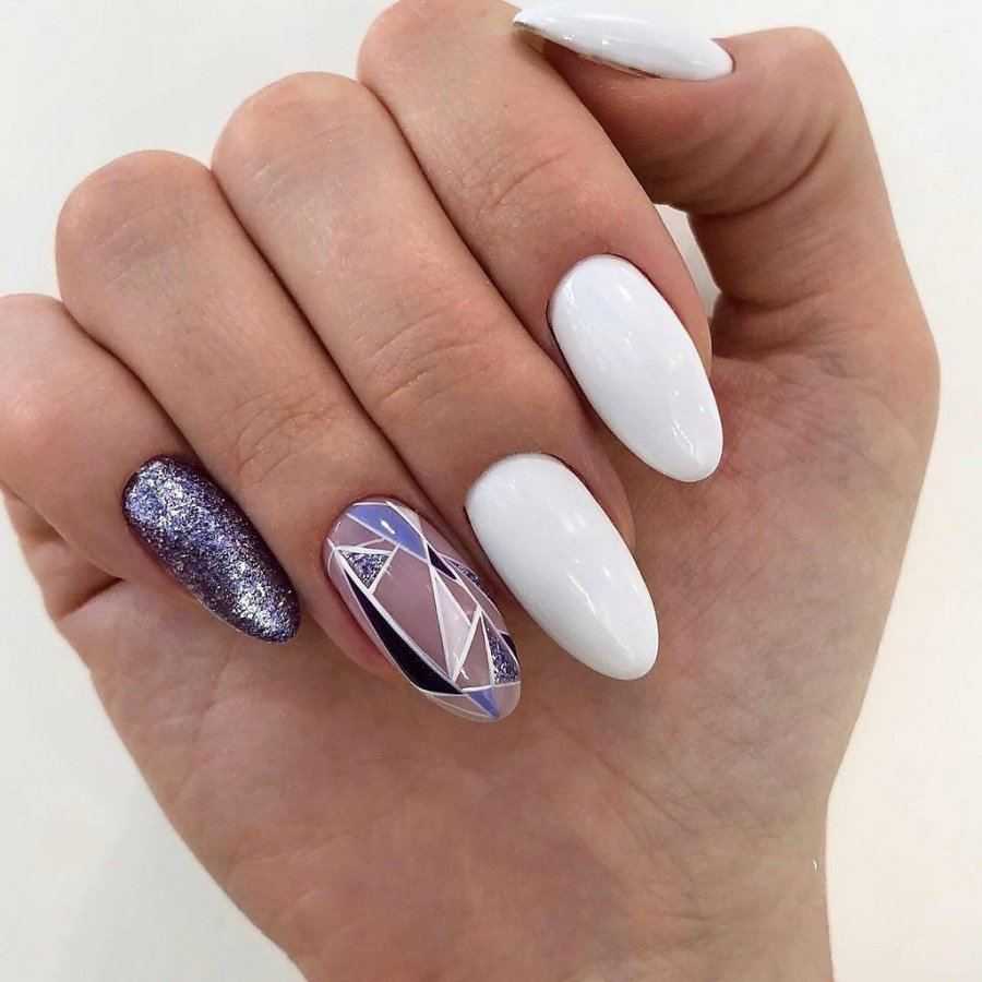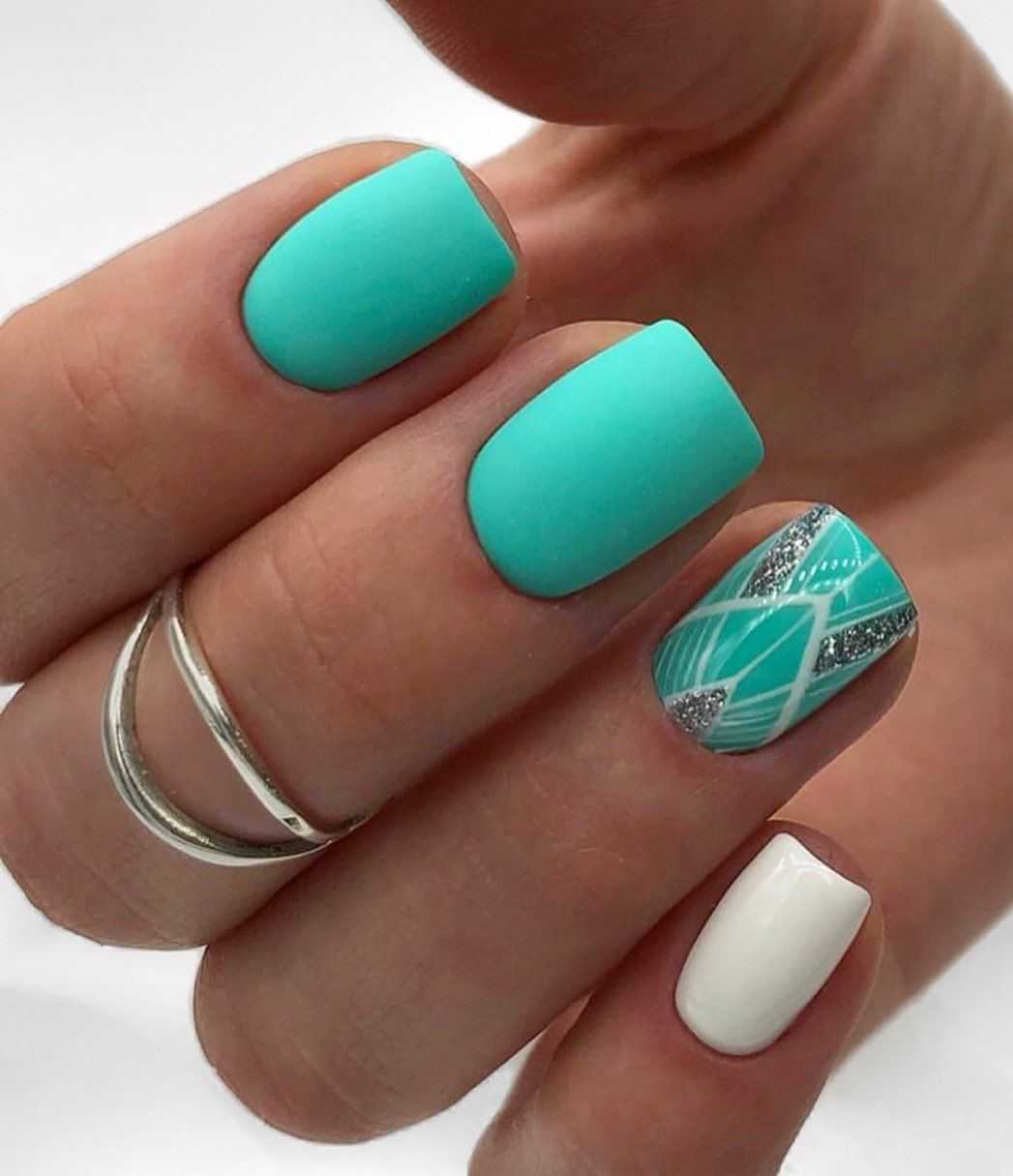 Для создания модного маникюра зима 2022 приемлемо использовать холодную гамму оттенков, например, бледно-голубого, бирюзового либо сиреневого, которые в комбинации с классическим белым в полной мере подчеркнут характер времени года. И конечно не забываем о серебристых блёстках, втирке, блестящей скотч-ленте, фольге, стразах и кристаллах пикси, способных передать ощущение сказки. В этот период актуально украшать маникюр витиеватыми узорами, снежинками, «вязаными» рисунками и прочими изображениями в новогодней тематике. Выделяем для этого пару акцентных ноготков и наслаждаемся результатом.