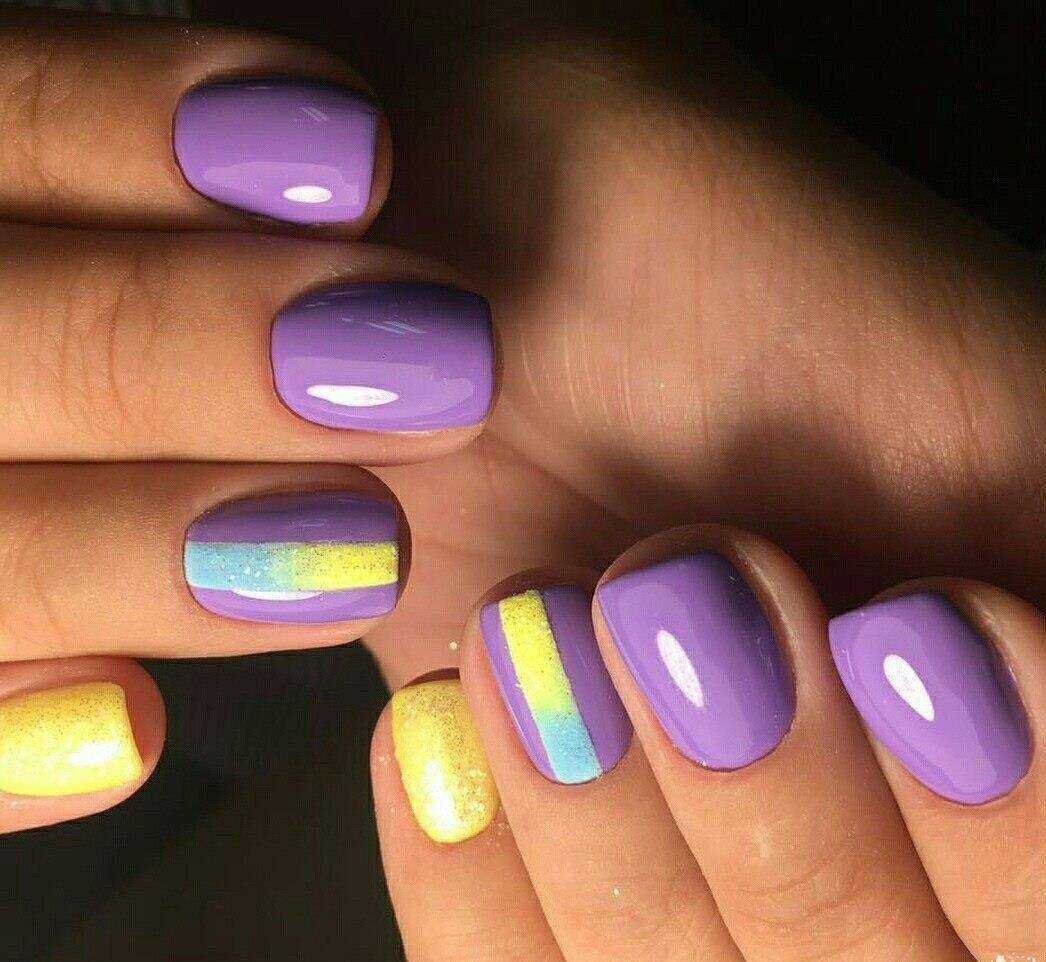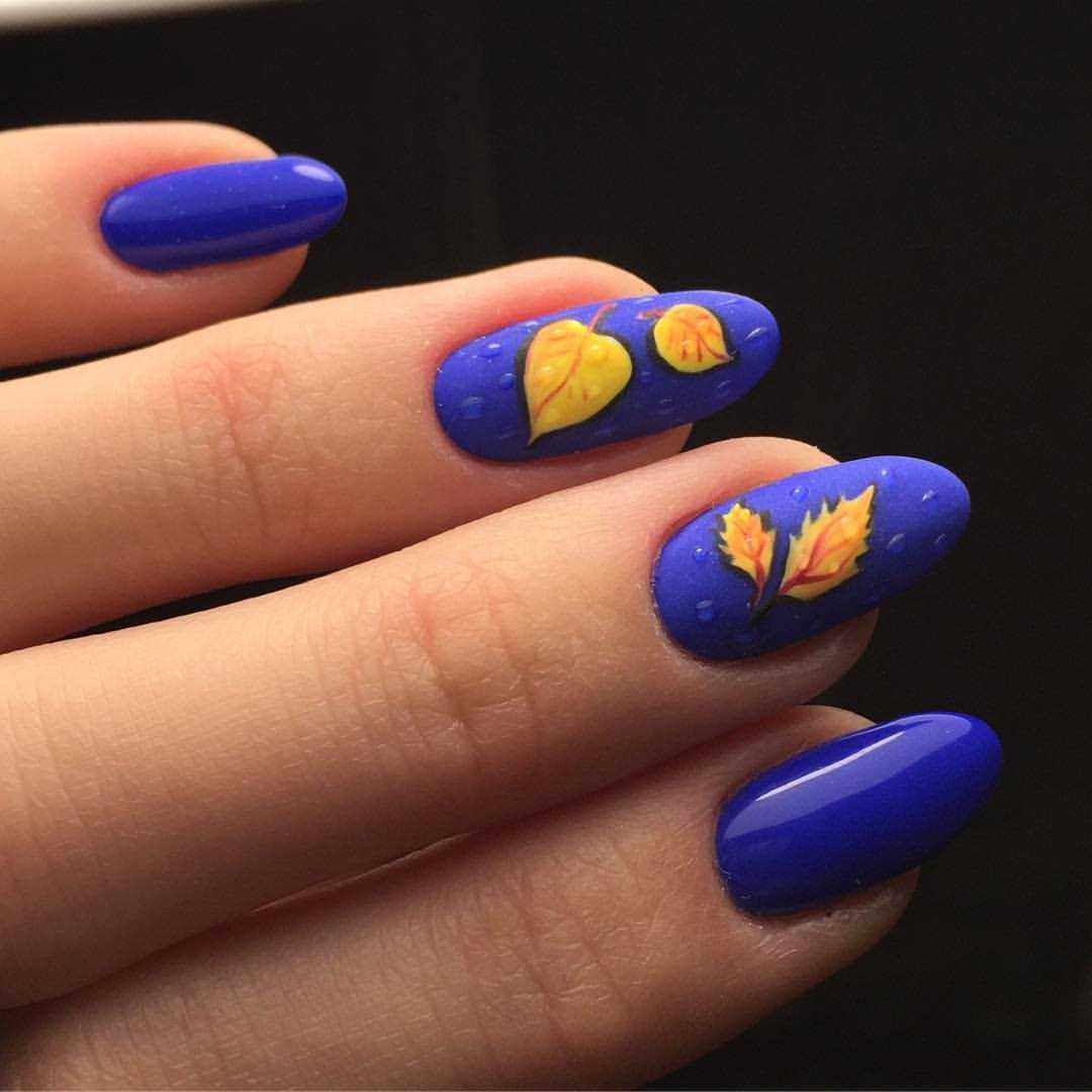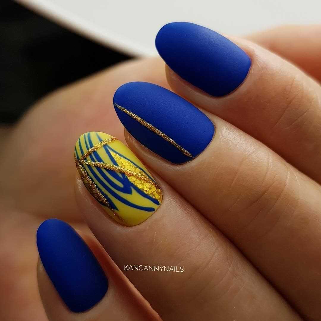В весенне-летнем сезоне стоит присмотреться к более нежным, мягким оттенкам синего цвета. Что касается варианта сочетания, то его выбор зависит от привычных образов. Если вам свойственна лаконичность и сдержанность, то выбирайте бежевый цвет. Он отлично смотрится в качестве основы для синего рисунка. Если же вам по душе более яркие комплекты одежды, то используйте насыщенные тона. К примеру, желто-синий маникюр никогда не останется без внимания. Более того, он может быть главным акцентом образа.