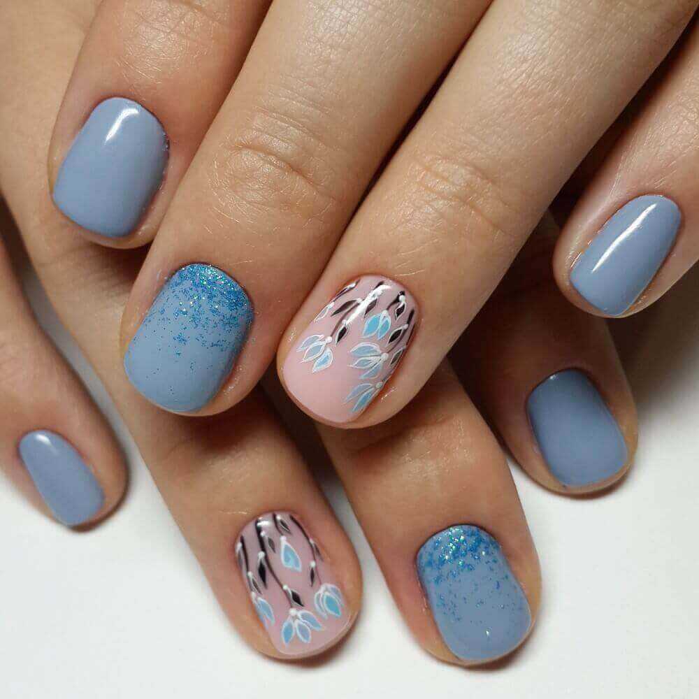 Нежное, романтичное сочетание розового и голубого пастельного цвета всегда пользовалось популярностью. Такой маникюр идеально подходит на каждый день, поскольку он не слишком заметный и хорошо сочетается со многими образами. В некоторых случаях он будет уместным и на работе. Кроме того, его часто выбирают для посещения праздников. Всего лишь немного декоративных акцентов и маникюр вмиг преобразится. Это могут быть блестки, бусины, оттиски фольги и многое другое. Что касается дизайна, то в пастельном сочетании невероятно красиво смотрится градиент вместе с цветочным рисунком. Это идеальный вариант для романтического свидания.