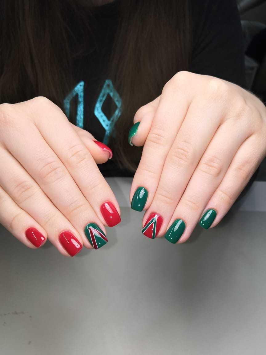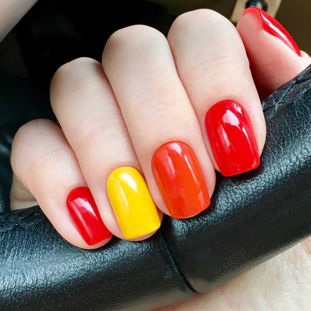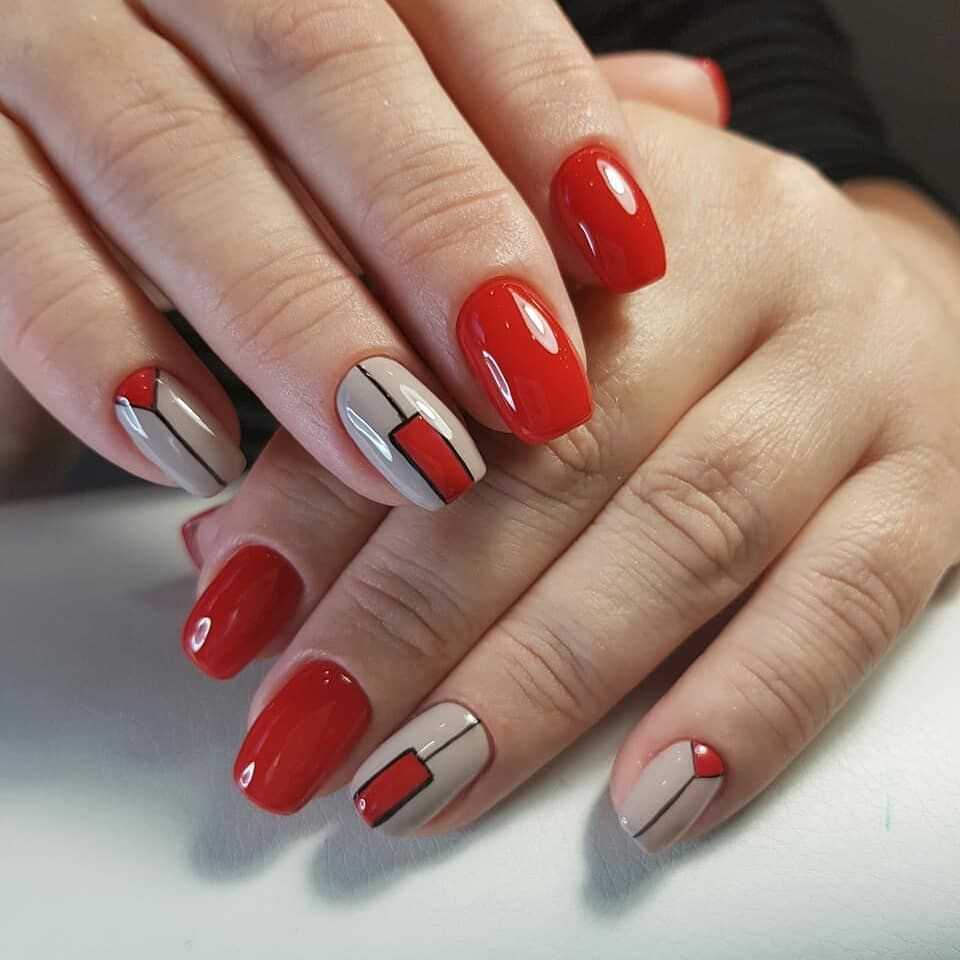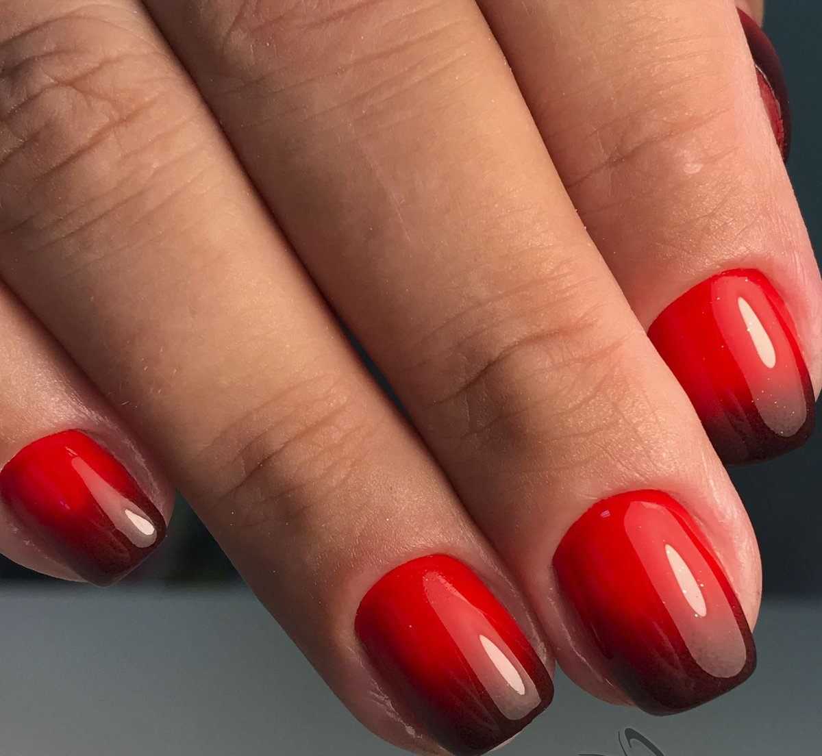 Короткие ногти с красно-черным покрытием всегда смотрятся элегантно, необычно. Такой маникюр предпочитают уверенные в себе девушки, которые точно знают чего хотят от жизни. В основном его выбирают для вечерних мероприятий и других важных событий. Но во многом внешний вид маникюра зависит от количества каждого цвета. Если основным будет красное покрытие, то оформление получится достаточно ярким. Его можно украсить черным геометрическим дизайном или абстракцией. В случае, если основным будет покрытие в черном цвете, можно сделать эффект градиента с плавным красным переходом. Дополнительный декор будет уместным, но только в небольшом количестве