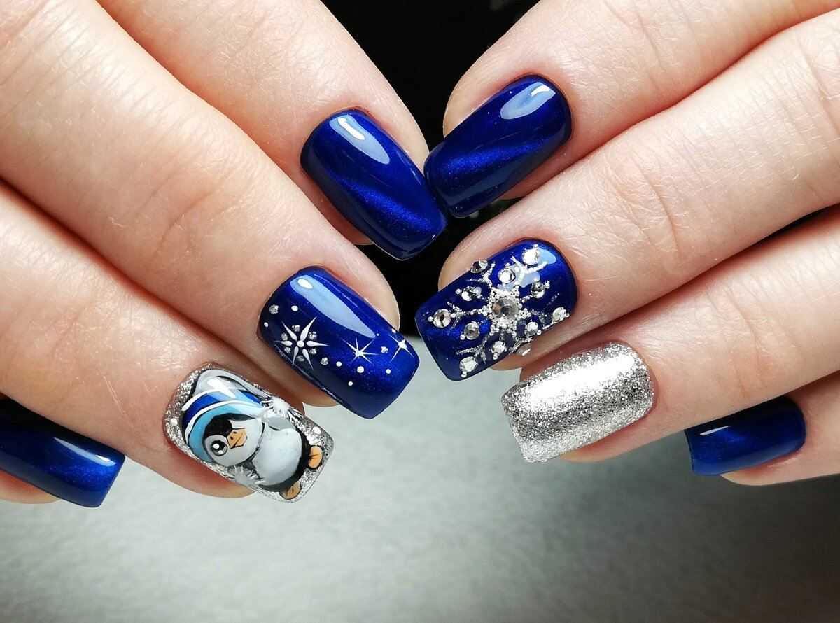 Маникюр синего цвета всегда смотрится стильно, независимо от наличия дополнительных деталей или рисунков. Это некая классика, которая актуальна в любое время года. Воплощайте интересные идеи, украшайте ноготки и маникюр будет выглядеть современно и модно.