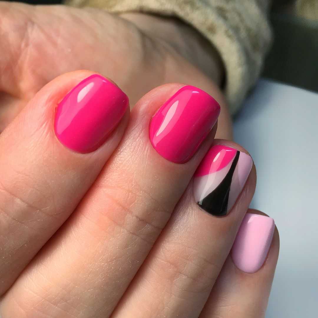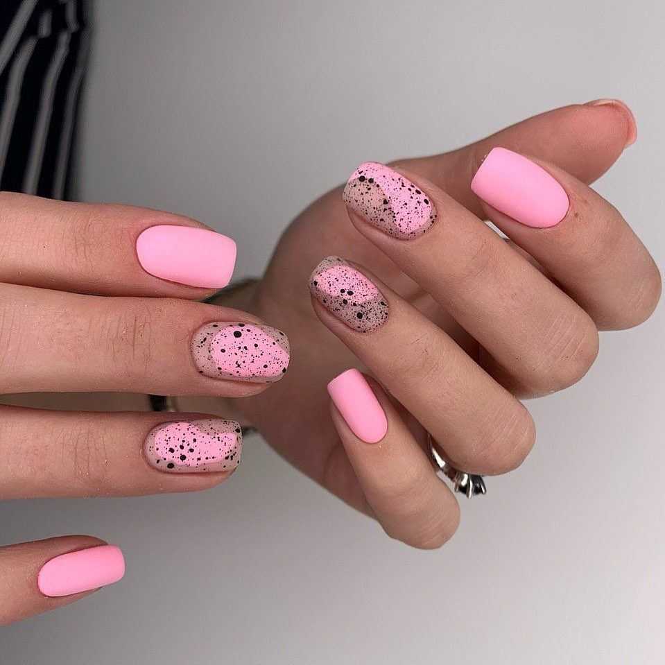 В маникюре можно использовать как один оттенок нежно-розового, так и сочетать несколько красивых цветов. Нежный дизайн можно получить, используя гель-лаки нежно-лилового и светло-розового цвета.