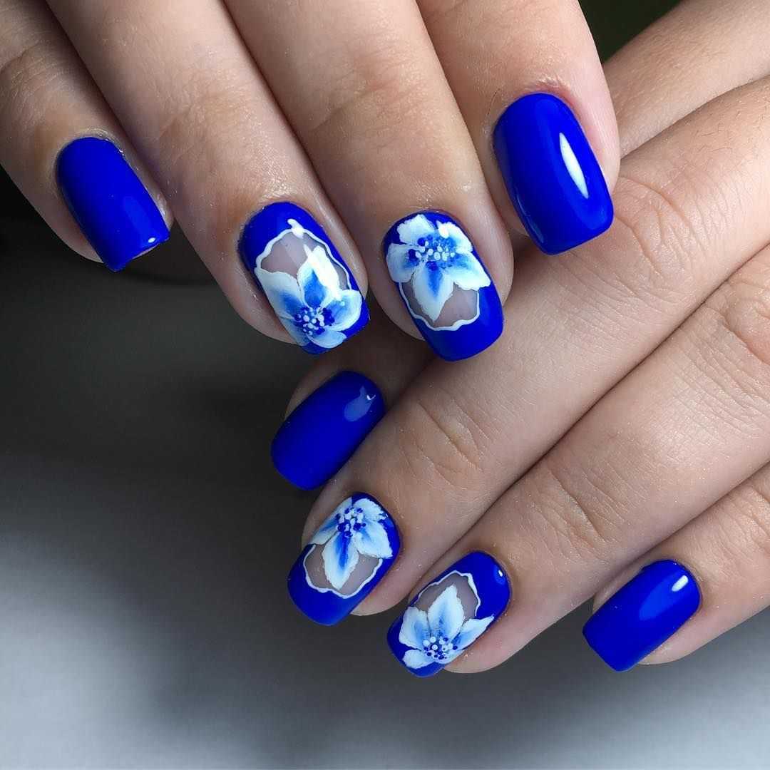 Цветочный рисунок едва ли не самый популярный в мире нейл-арта. Его выбирают круглый год, сочетают с самыми разными вариантами дизайна. Это и делает его максимально универсальным. Крупные, объемные бутоны чаще всего дополняют яркий маникюр. Он выглядит особенно эффектно и никогда не остается без внимания. Если же необходимо более скромное оформление, то лучше дополнить его тонкими веточками. Благодаря чему маникюр получается сдержанным и отлично подходит даже на каждый день. Также отлично смотрятся цветы в синем цвете на нейтральной основе. Такой дизайн не слишком яркий и за счет этого сочетается практически с любым образом.