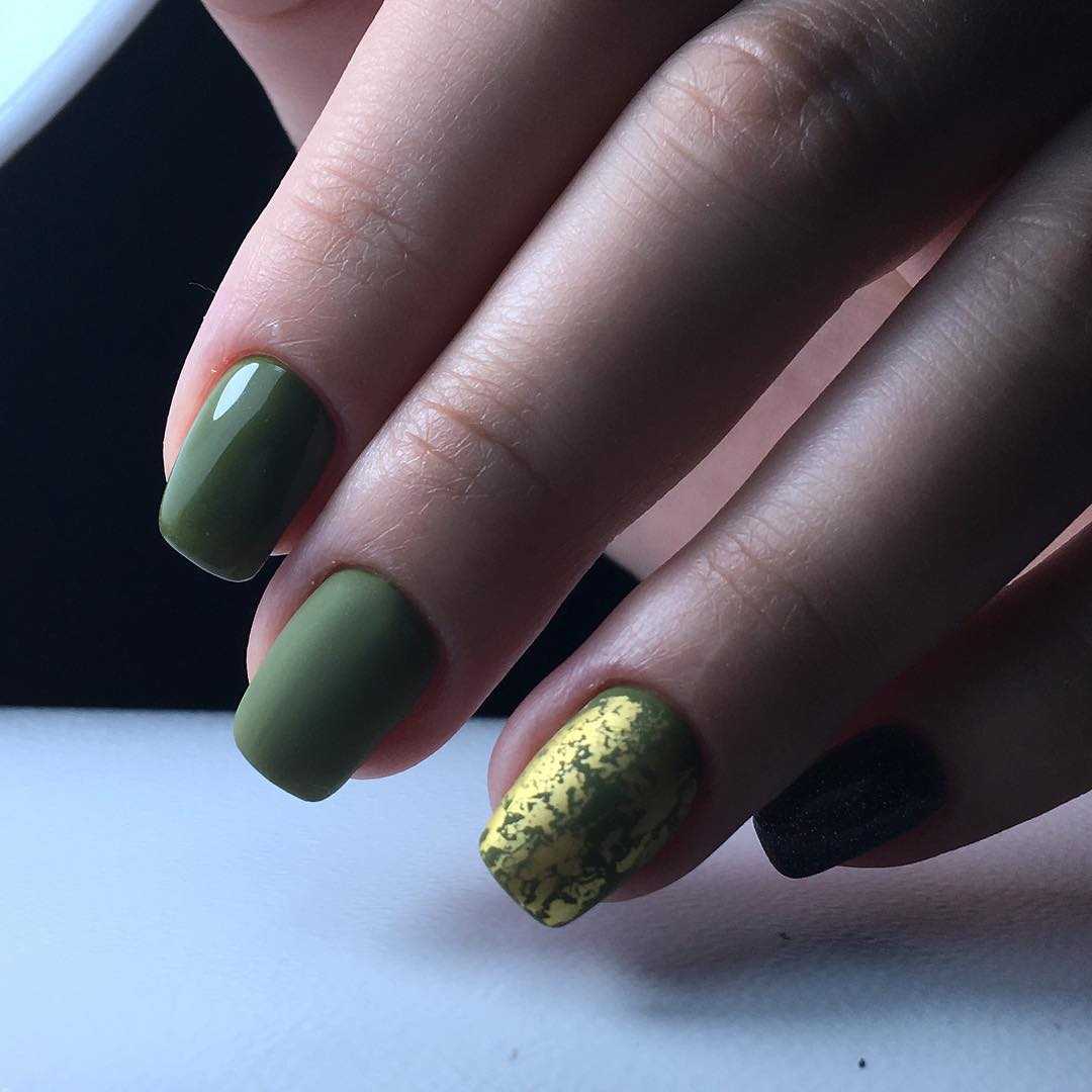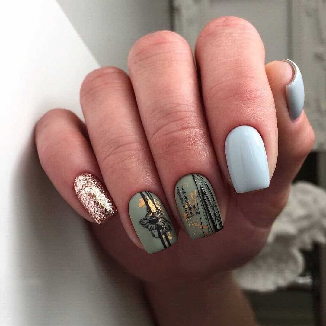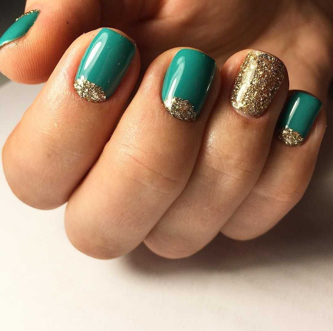 Для коротких ногтей также подойдет втирка или блестки. Втиркой можно выделить 1-2 пальца. Втирка хорошо сочетается с матовым покрытием на других ногтях. Яркая разница фактур создаст таинственный и чарующий эффект.