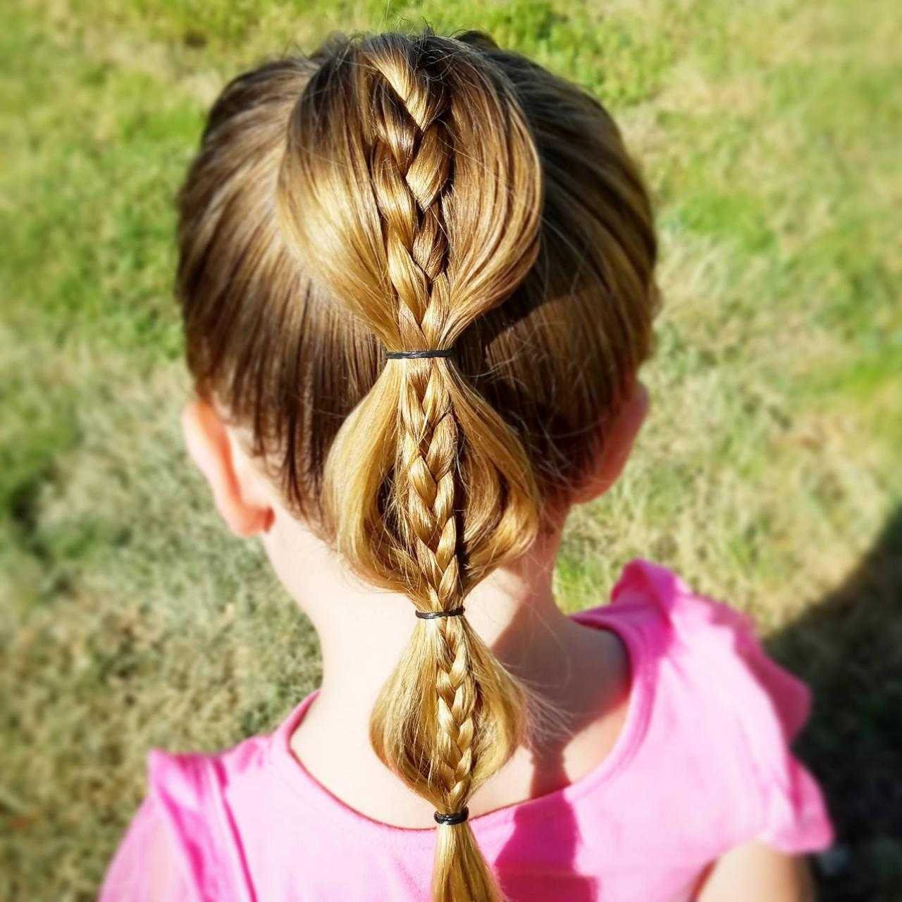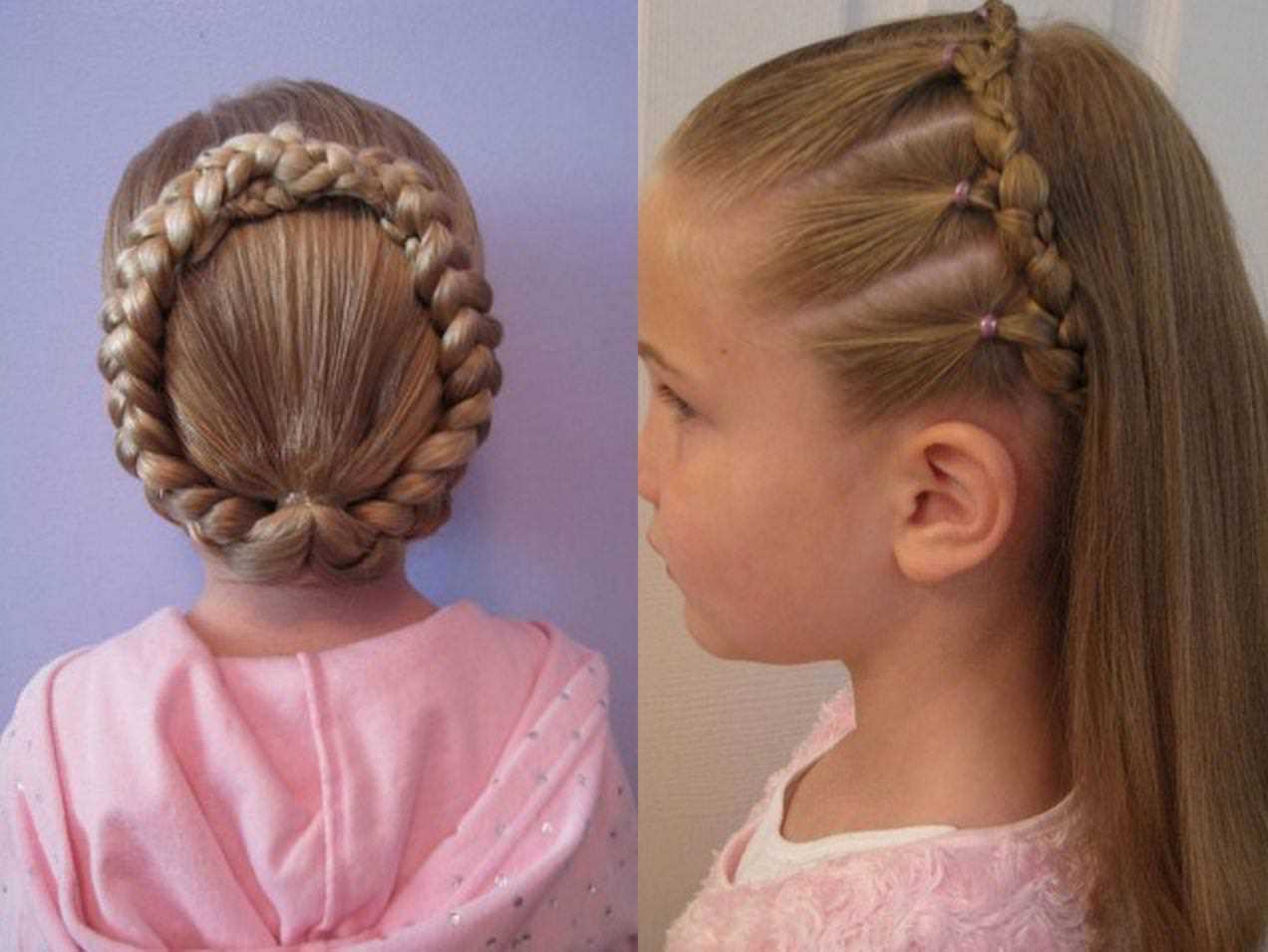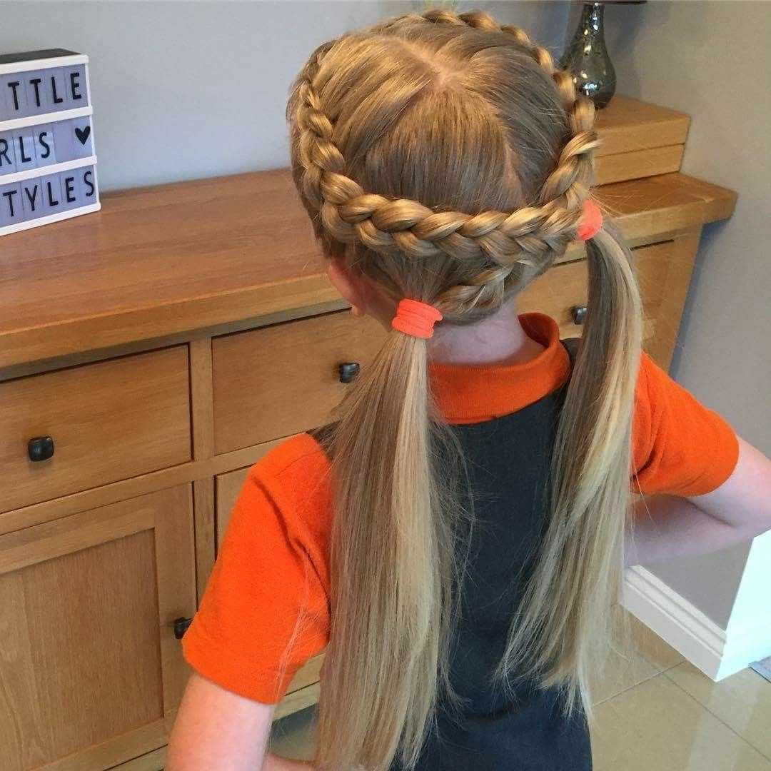 Плетение в моде, поэтому такая прическа подойдет как школьницам младших классов, так и старшеклассницам. Годится она как на длинные волосы, так и на средние. Вам понадобятся силиконовые резинки и шпильки.
