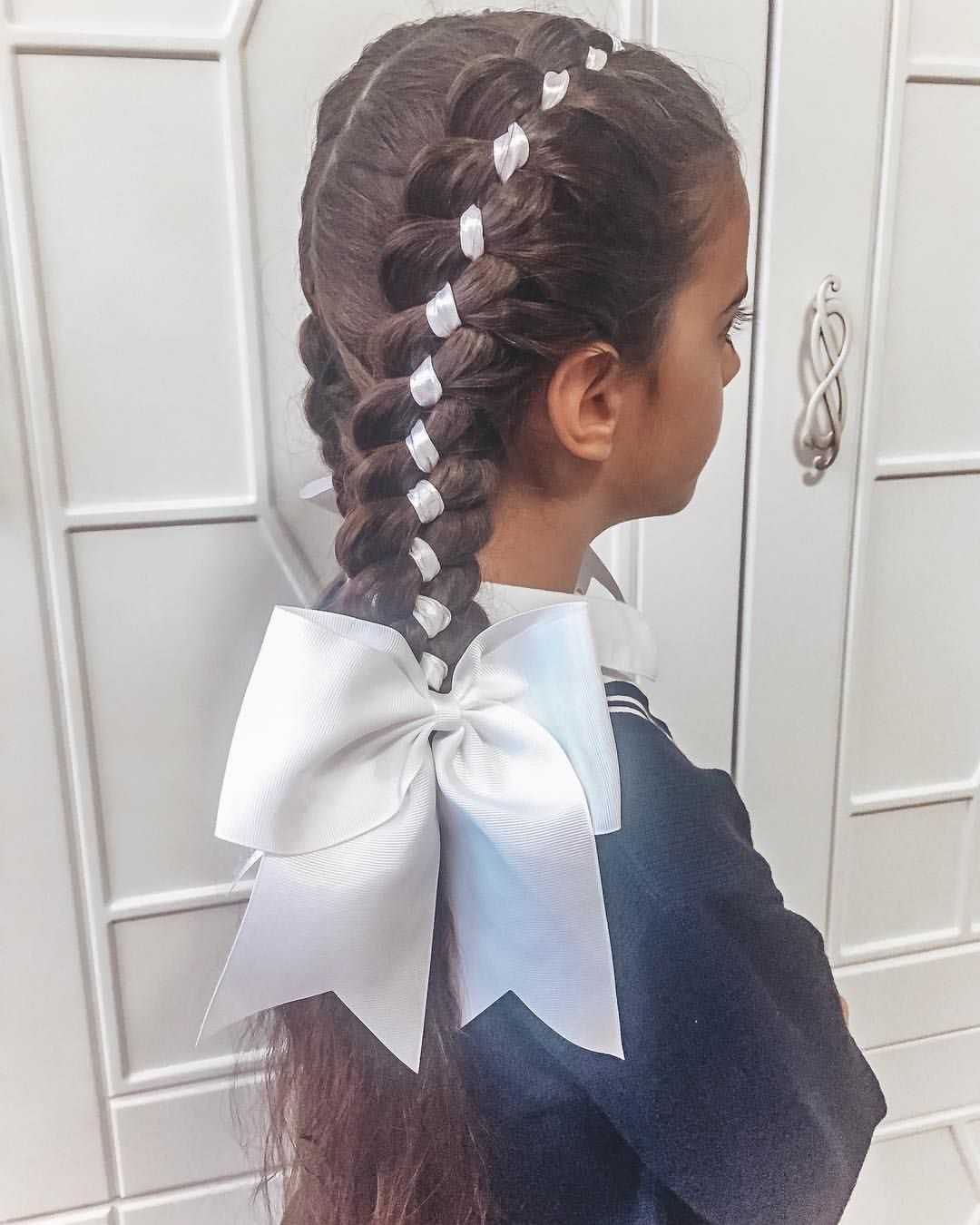 Хит школьного сезона 2020-2021 – прически с лентами. Подобными укладками родители девочек увлеклись еще в прошлом учебном году. Простые прически, дополненные репсовыми и атласными лентами, преображаются и выглядят гораздо интереснее.