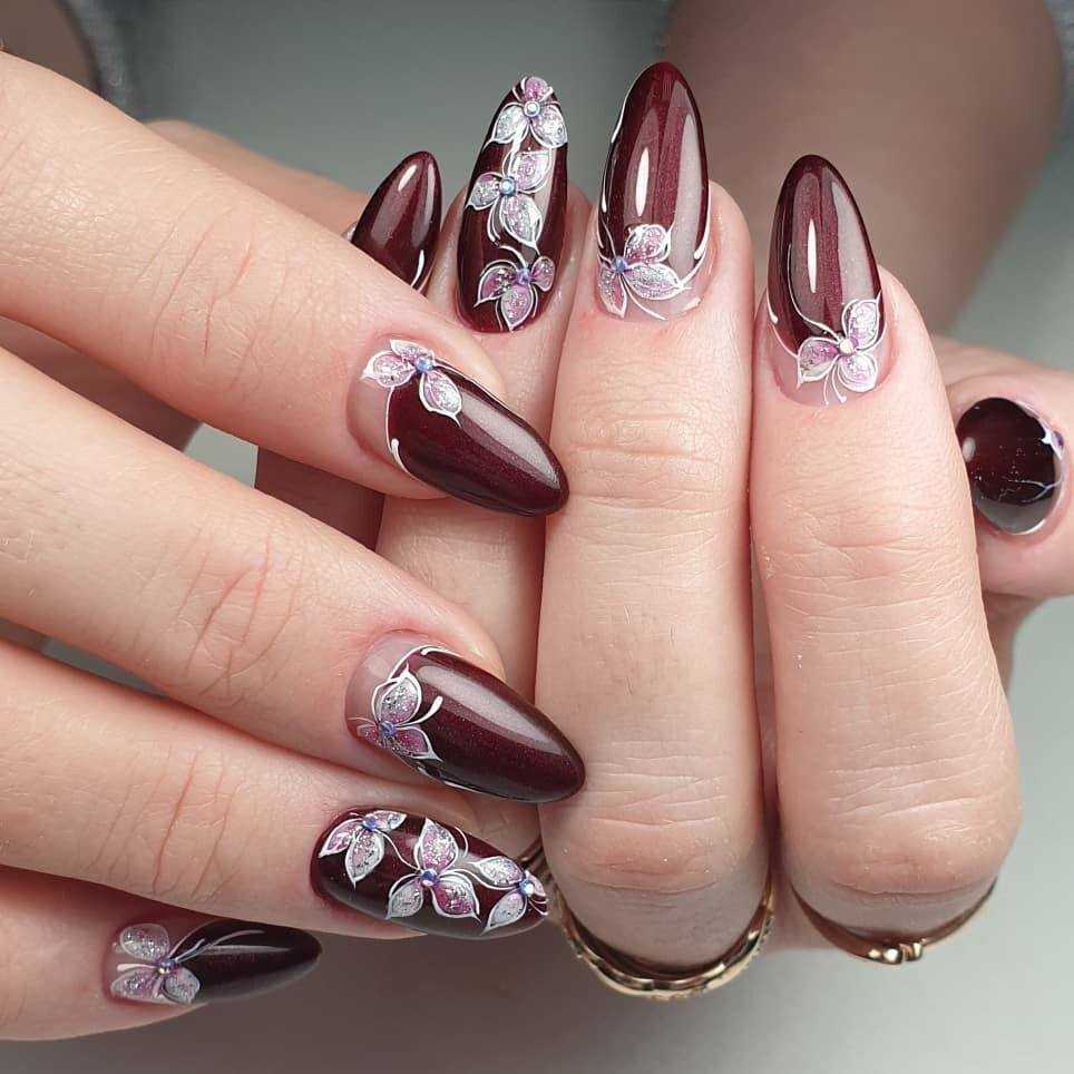 Маникюр цвета марсала