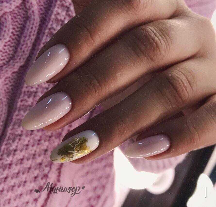 Шикарно смотрится маникюр с оттиском золотой фольгой. Такой декор применим как на глянцевой, так и на матовой поверхности. Это самый простой и повседневный вариант использования золотого цвета в нейл-артах.