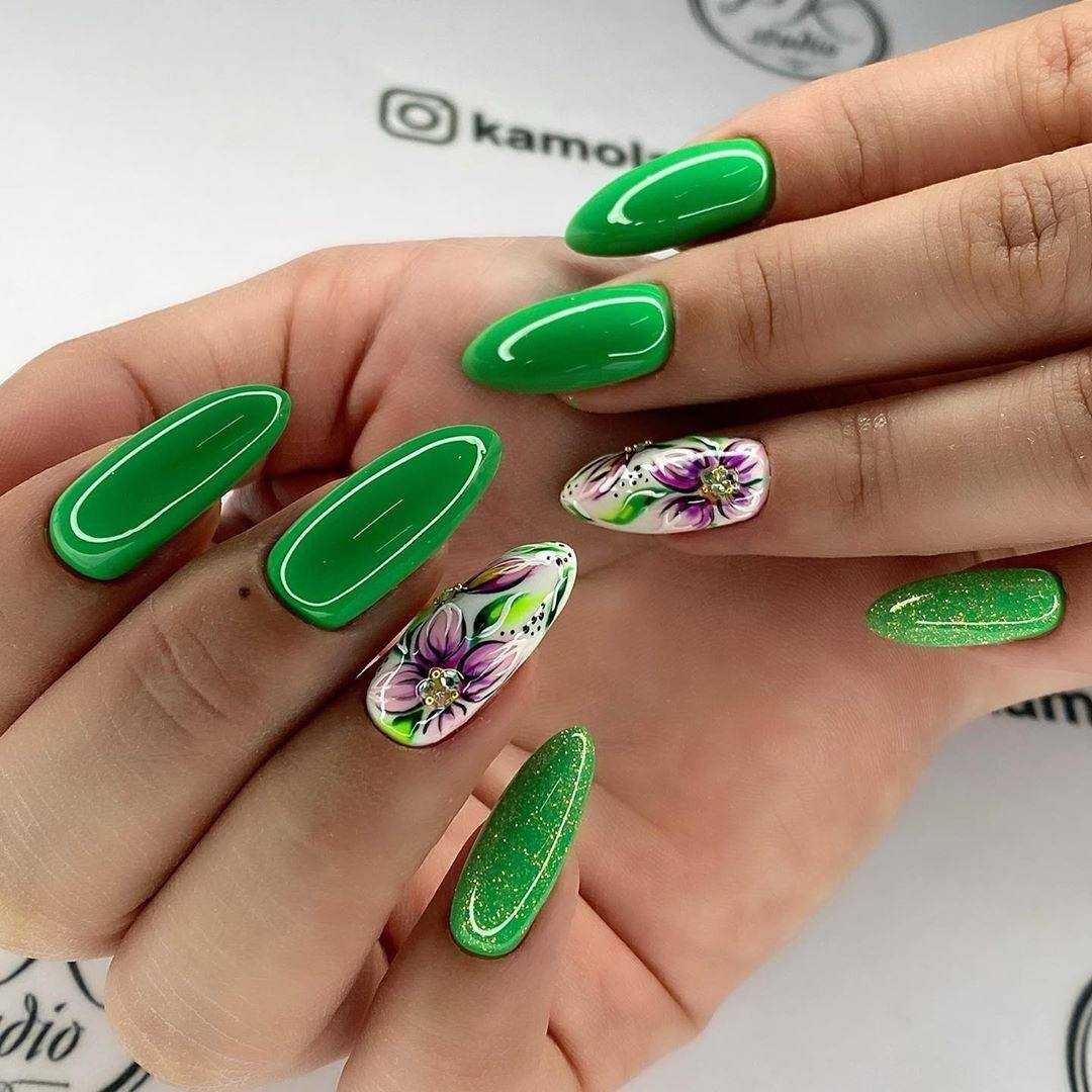 Идеи сочетания зелёного на ногтях