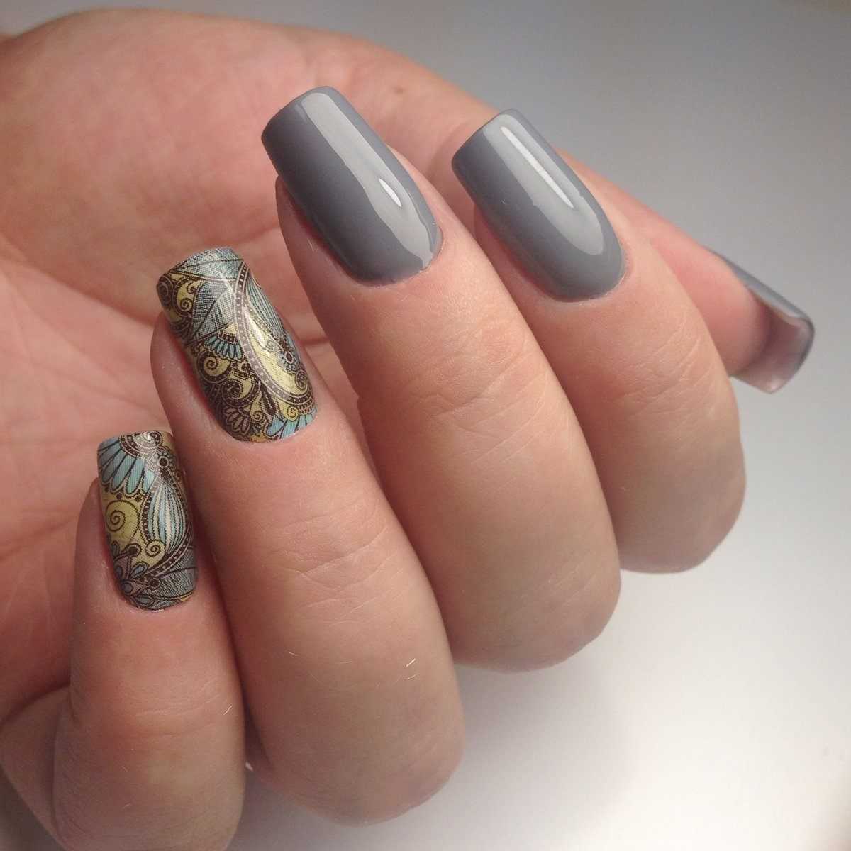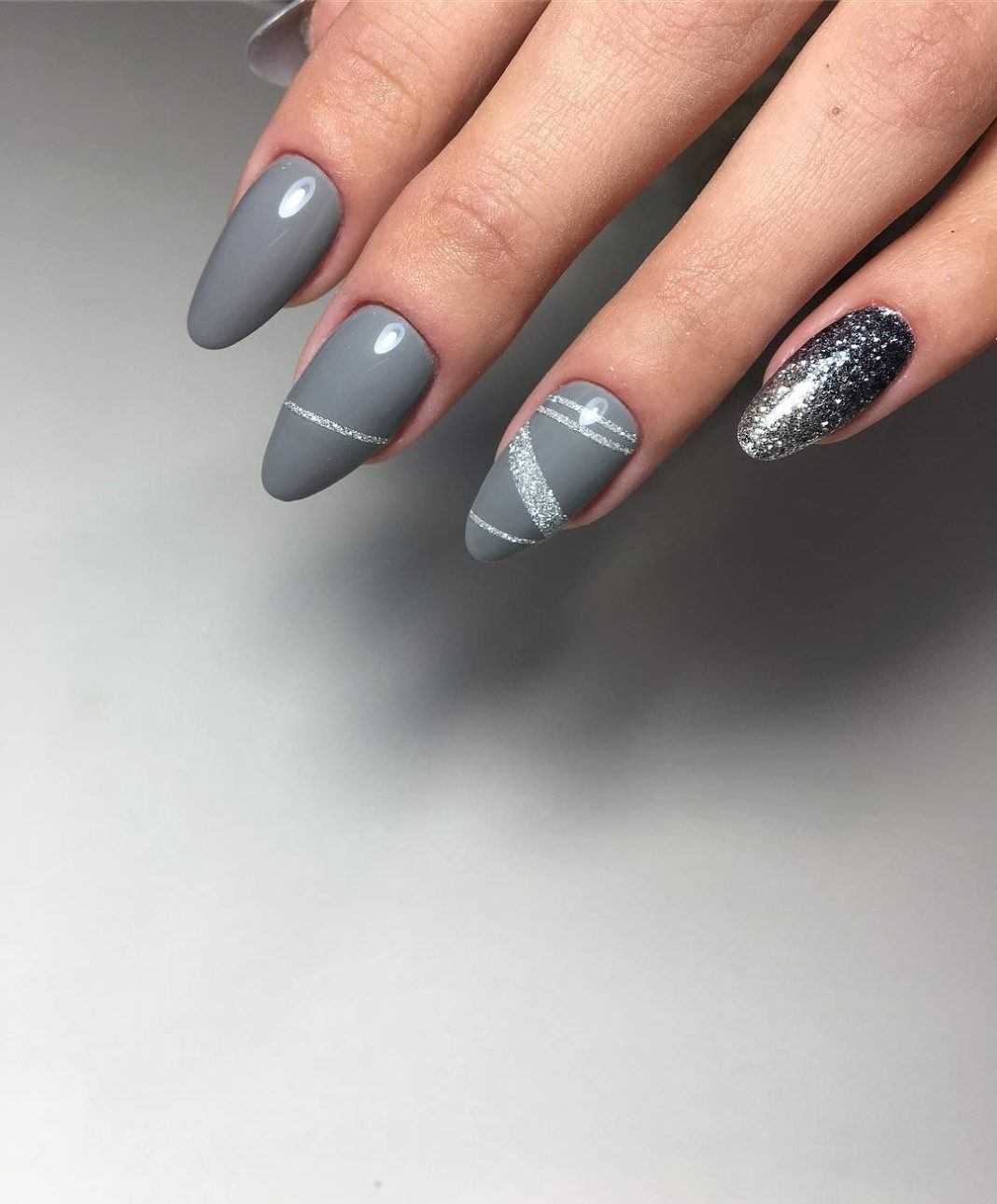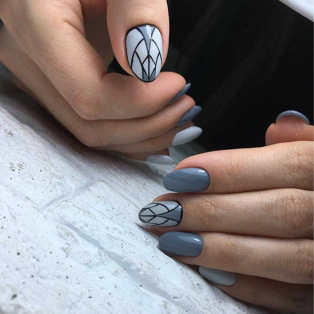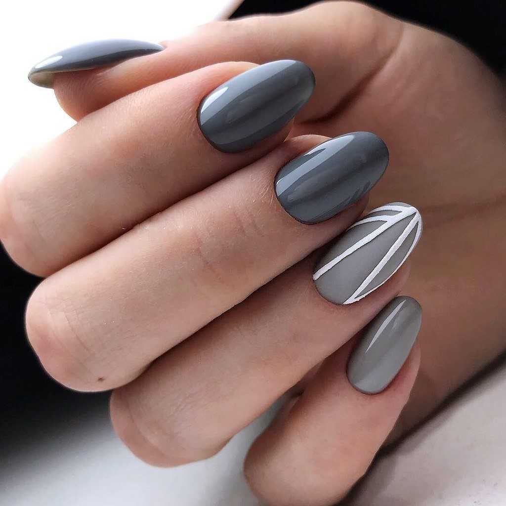 Сочетание серых оттенков в маникюре уже длительное время пользуется популярностью. Его используют для основного покрытия, тщательной прорисовки деталей и просто в качестве лаконичного акцента.