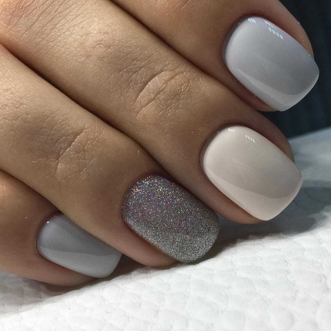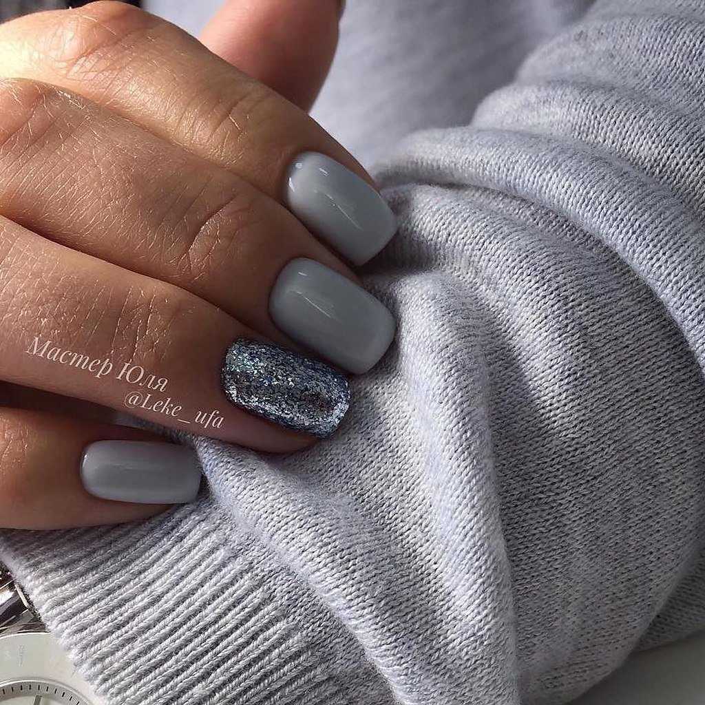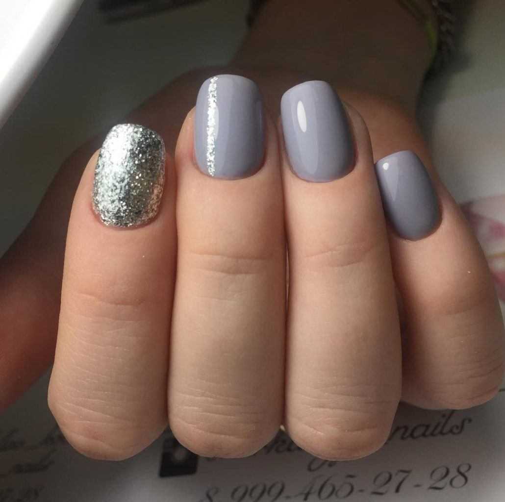 С тем, что короткие ногти сейчас особенно популярны, трудно поспорить. Ведь далеко не каждая девушка может похвастаться достаточно длинными и крепкими ноготками. К тому же, короткая длина максимально комфортна в повседневной жизни и идеально подходит для воплощения самых разных идей маникюра. Прежде всего, стоит отметить, что в данном случае актуальной будет серая цветовая гамма. Светлые оттенки с минимальным количеством декора на коротких ногтях смотрятся особенно красиво и лаконично. К тому же, всегда можно добавить цветной акцент в виде контрастного лака или других деталей.