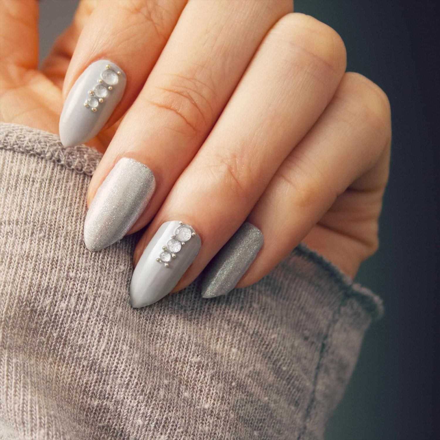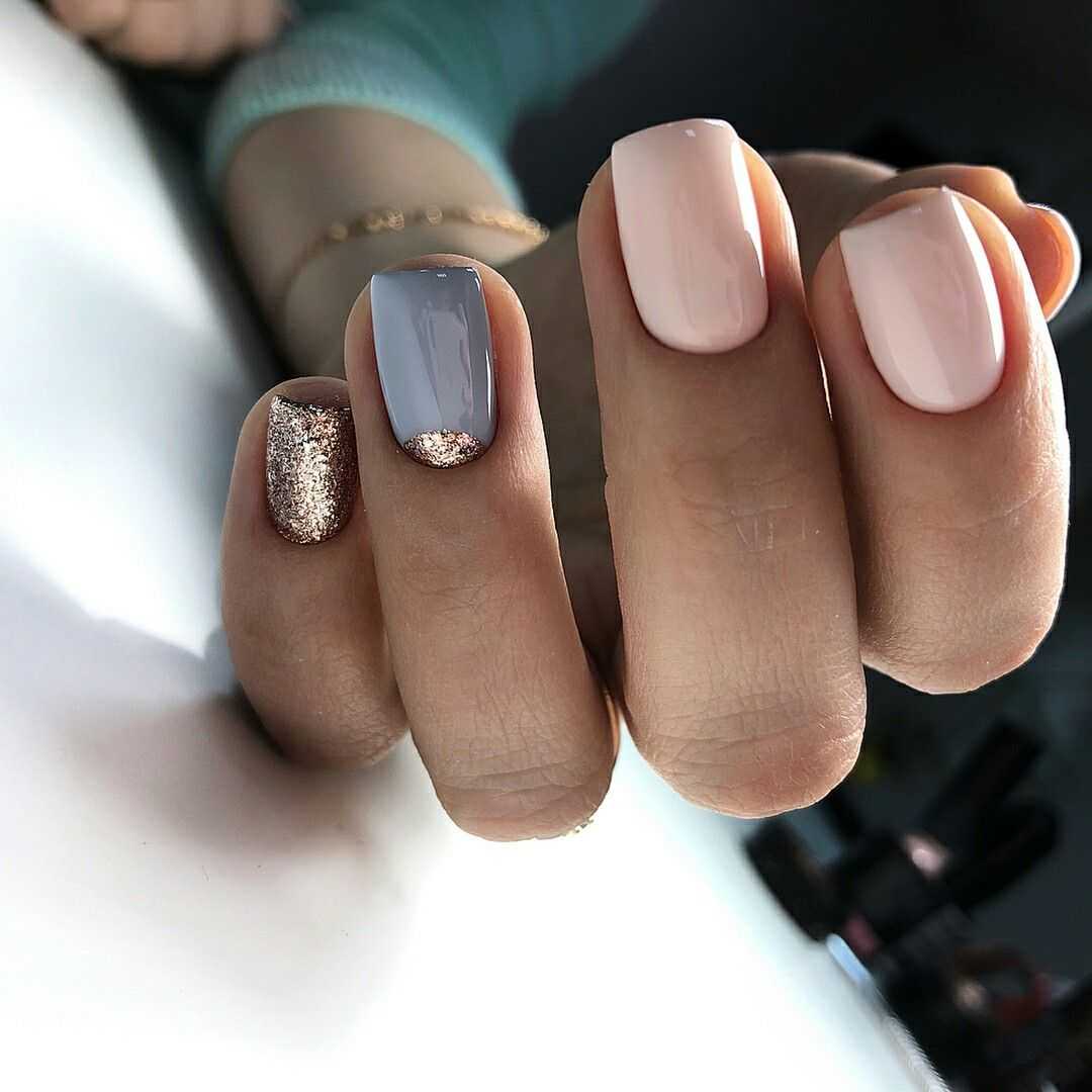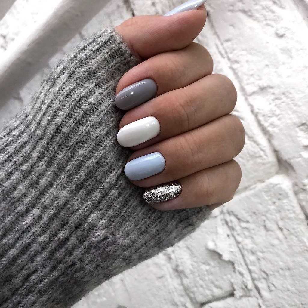 С тем, что короткие ногти сейчас особенно популярны, трудно поспорить. Ведь далеко не каждая девушка может похвастаться достаточно длинными и крепкими ноготками. К тому же, короткая длина максимально комфортна в повседневной жизни и идеально подходит для воплощения самых разных идей маникюра. Прежде всего, стоит отметить, что в данном случае актуальной будет серая цветовая гамма. Светлые оттенки с минимальным количеством декора на коротких ногтях смотрятся особенно красиво и лаконично. К тому же, всегда можно добавить цветной акцент в виде контрастного лака или других деталей.