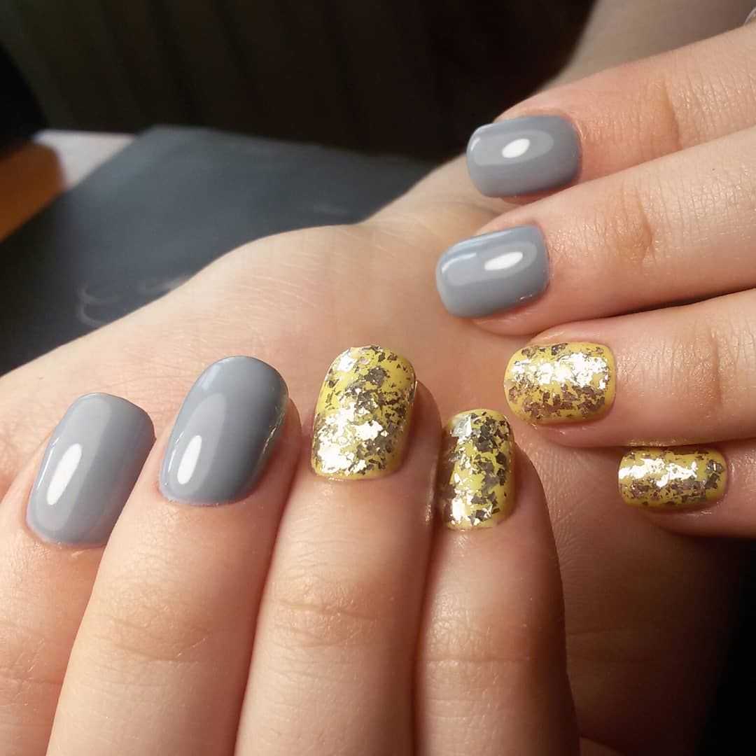 Серо-желтый маникюр