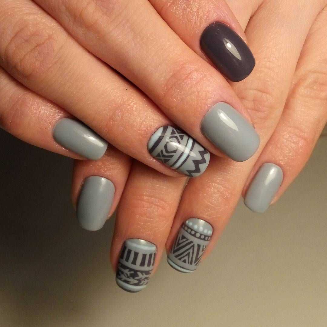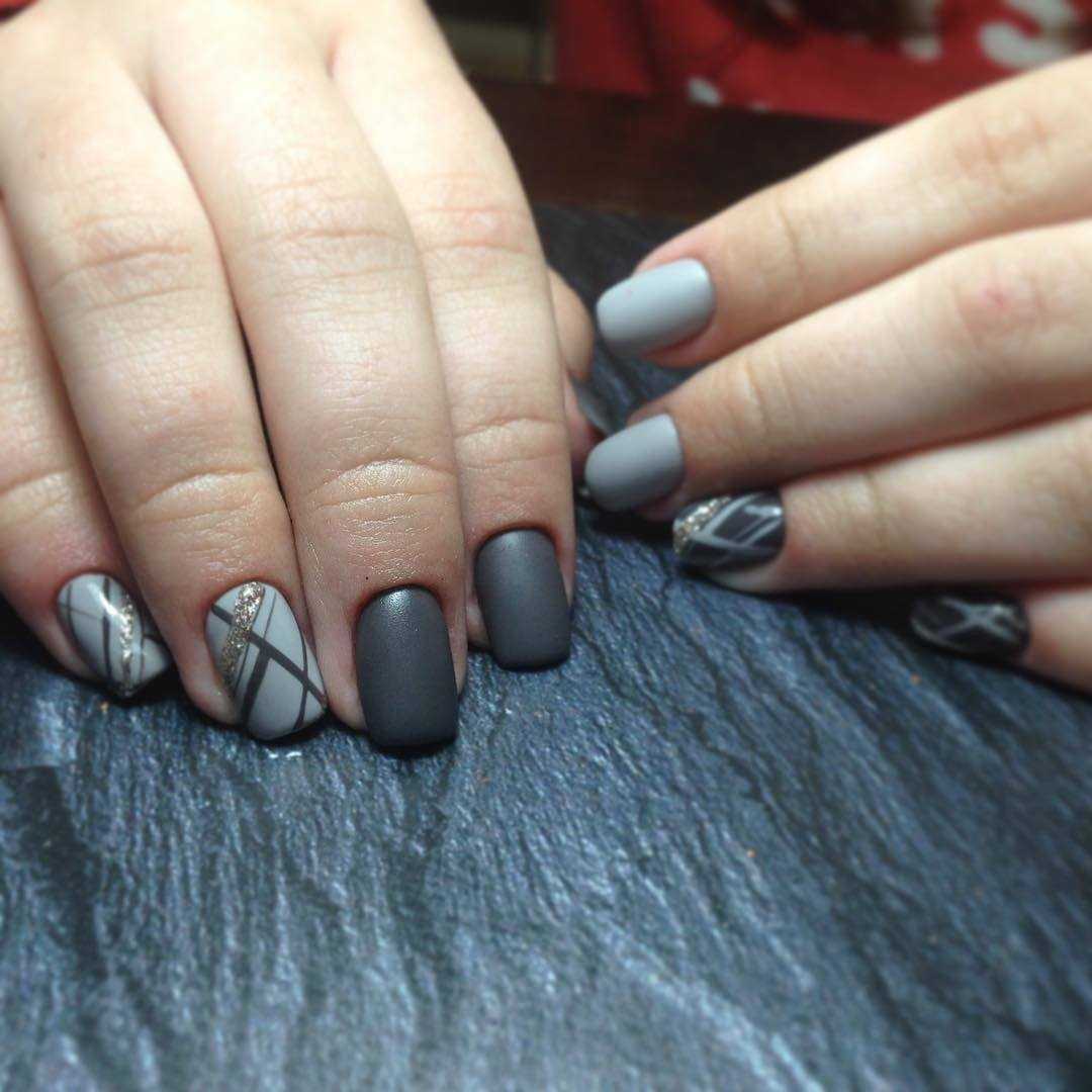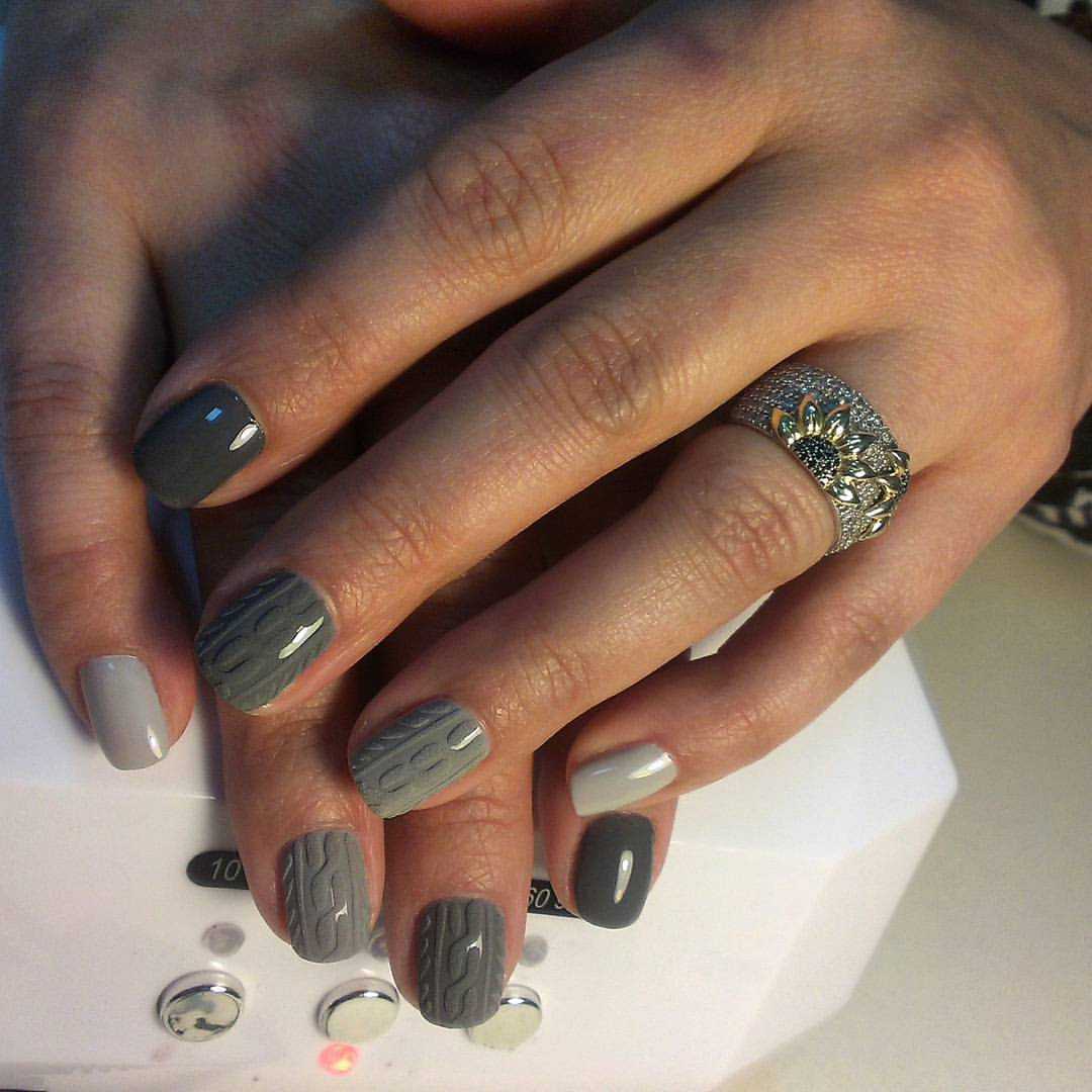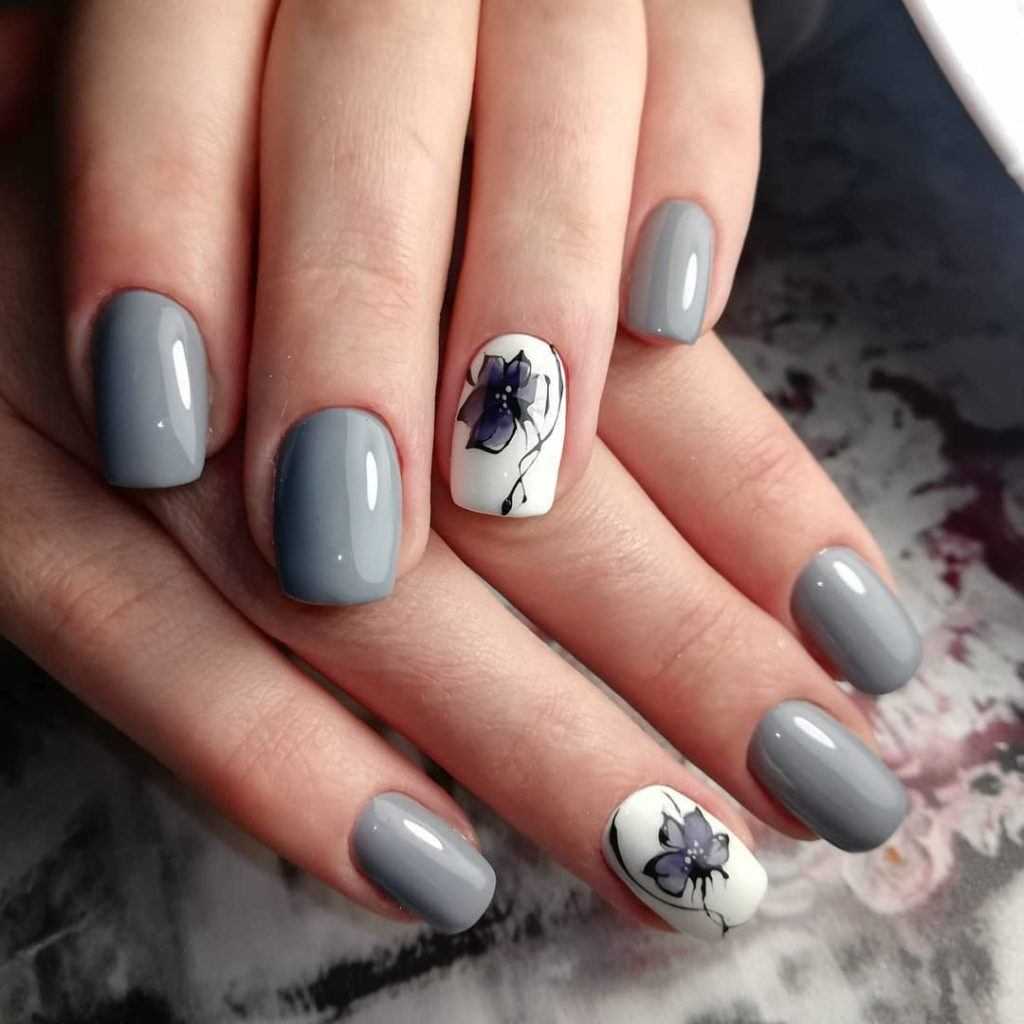Маникюр в серых тонах на коротких ногтях