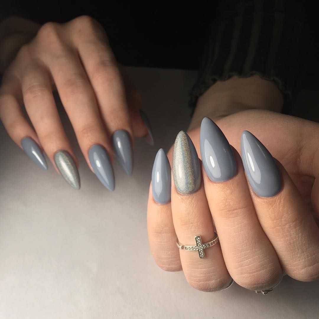 Серо-голубой маникюр