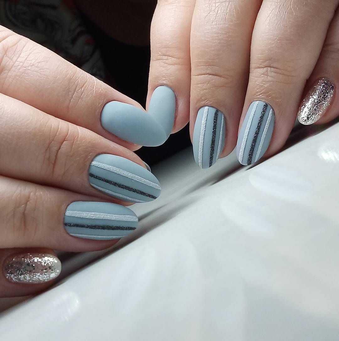 Серо-синий маникюр