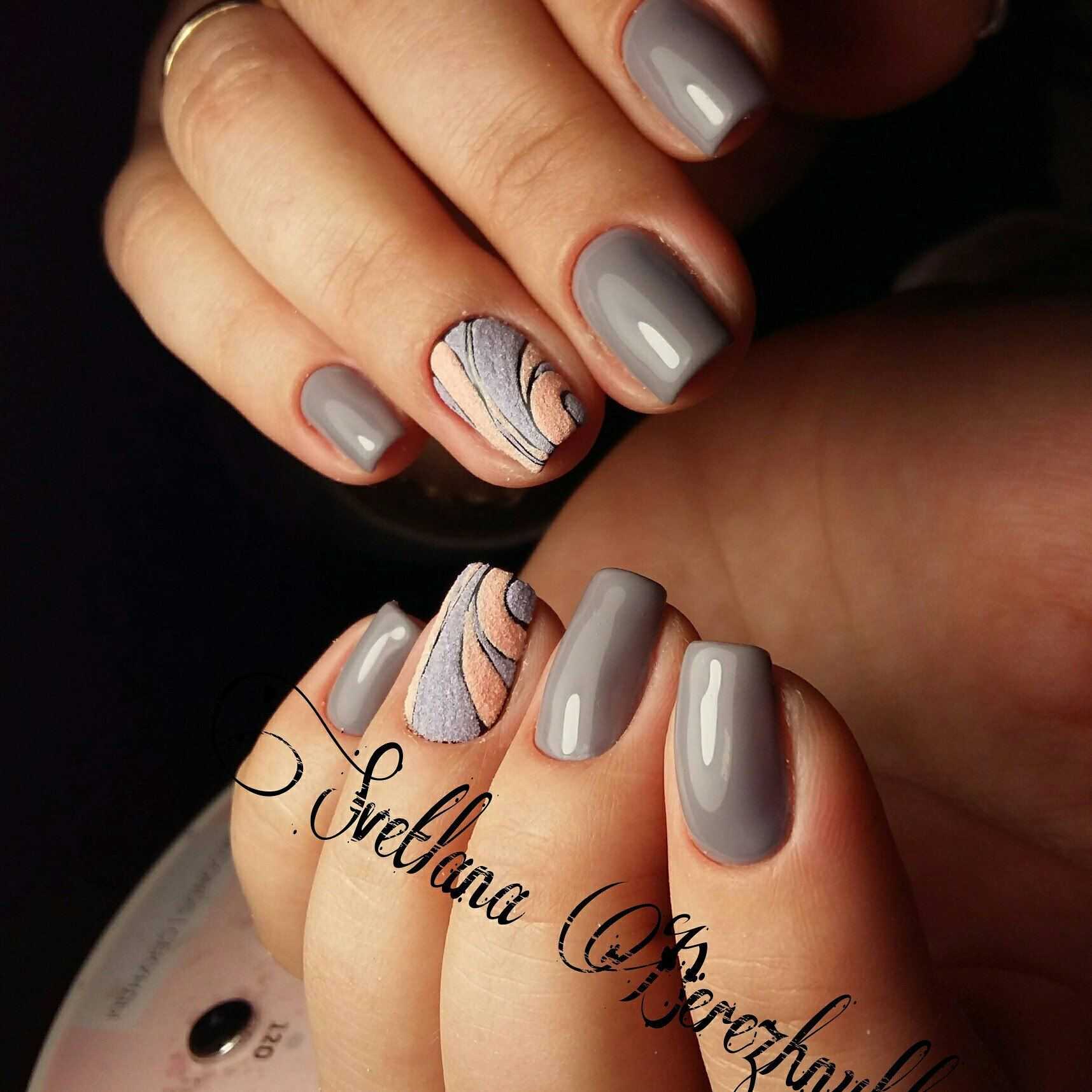 Универсальность серого цвета позволяет использовать его как на длинных, так и на коротких ногтях. Сегодня когда в тренде короткая длина, отличающаяся практичностью и удобством, серый дизайн особенно востребован.