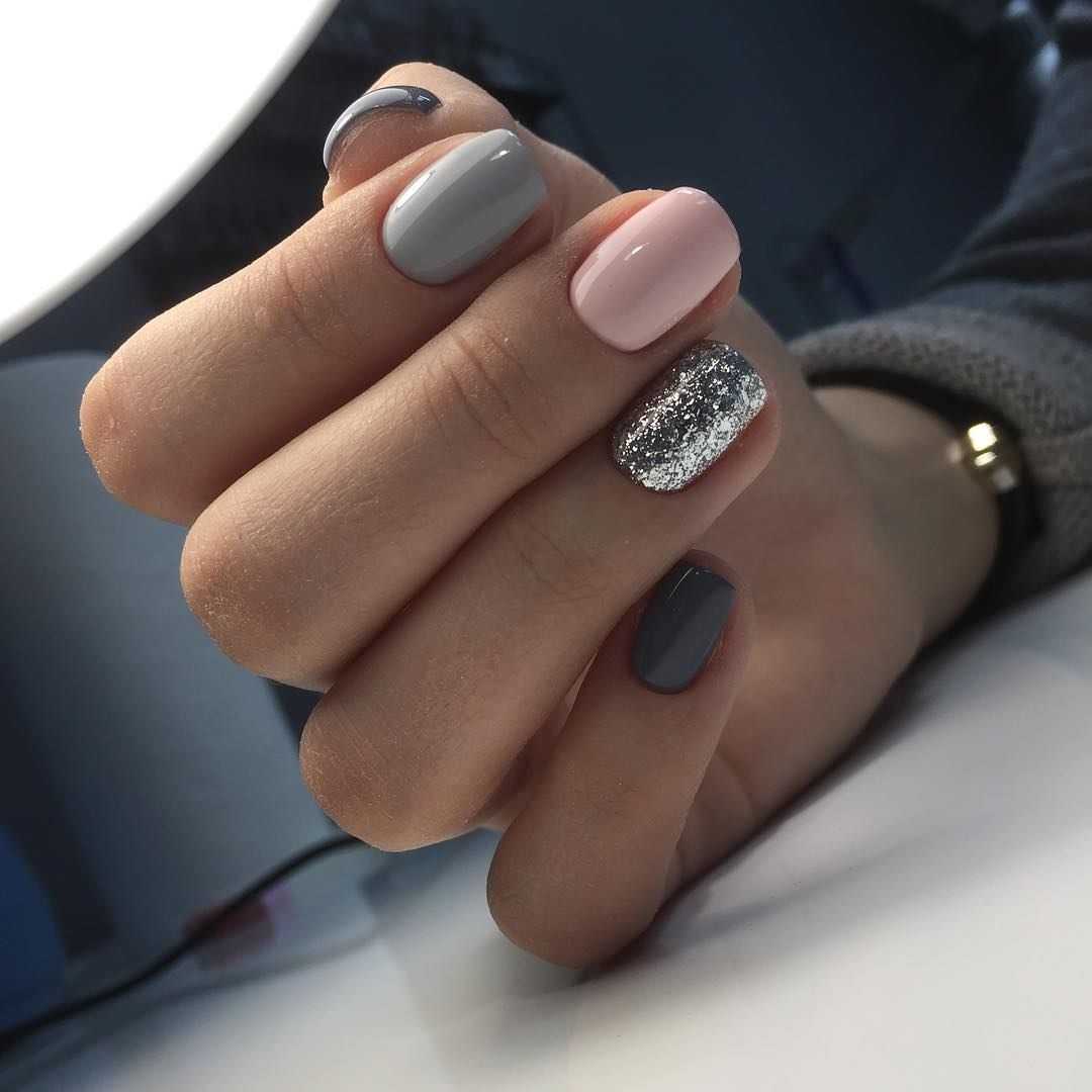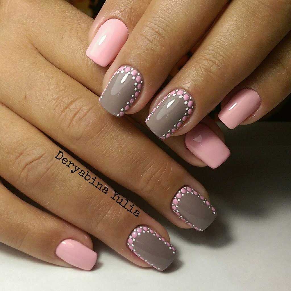 Идеи сочетания серого маникюра с розовым
