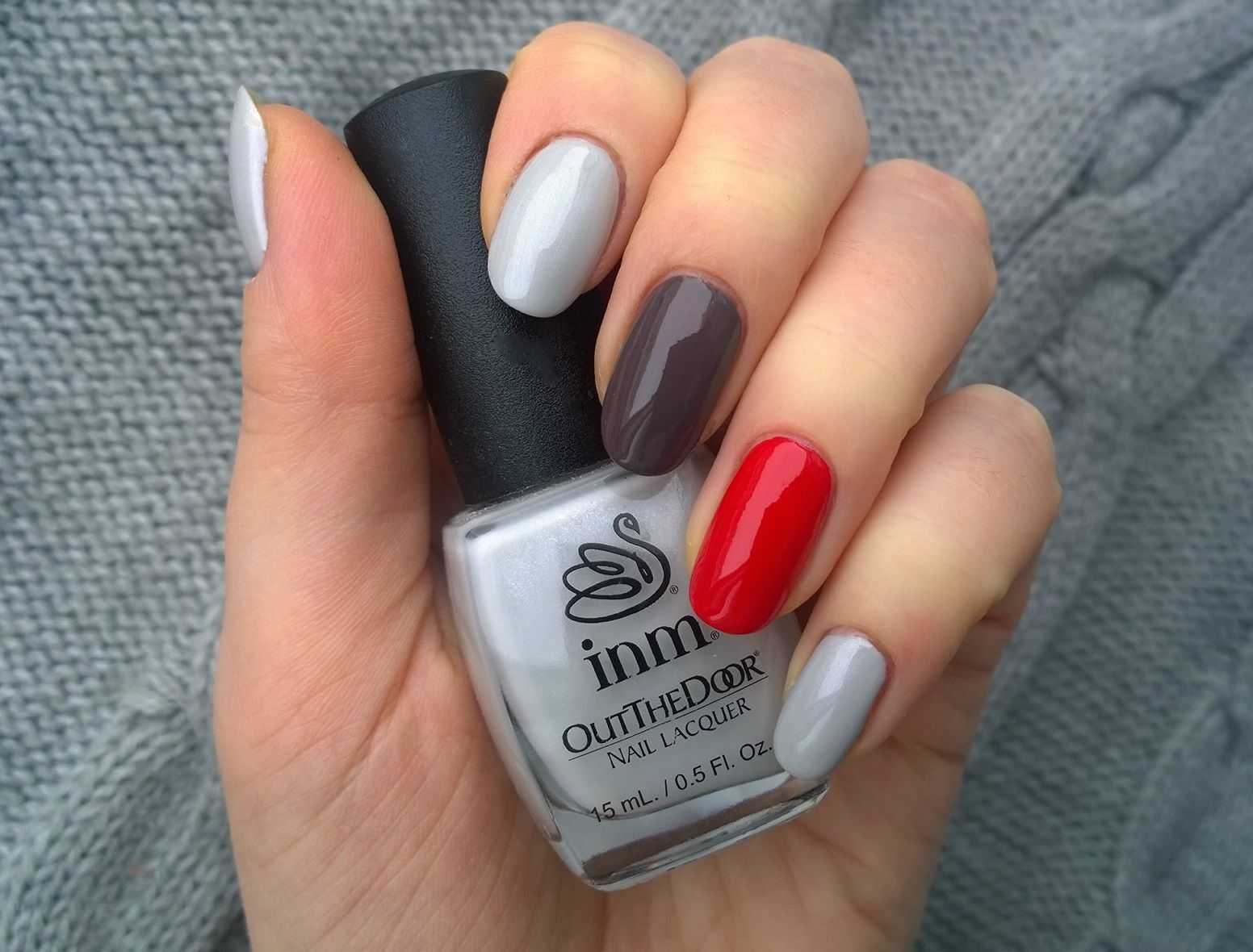 Маникюр серый с красным