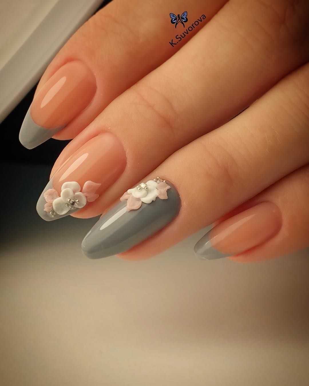 Примеры сочетания в маникюре серого и белого