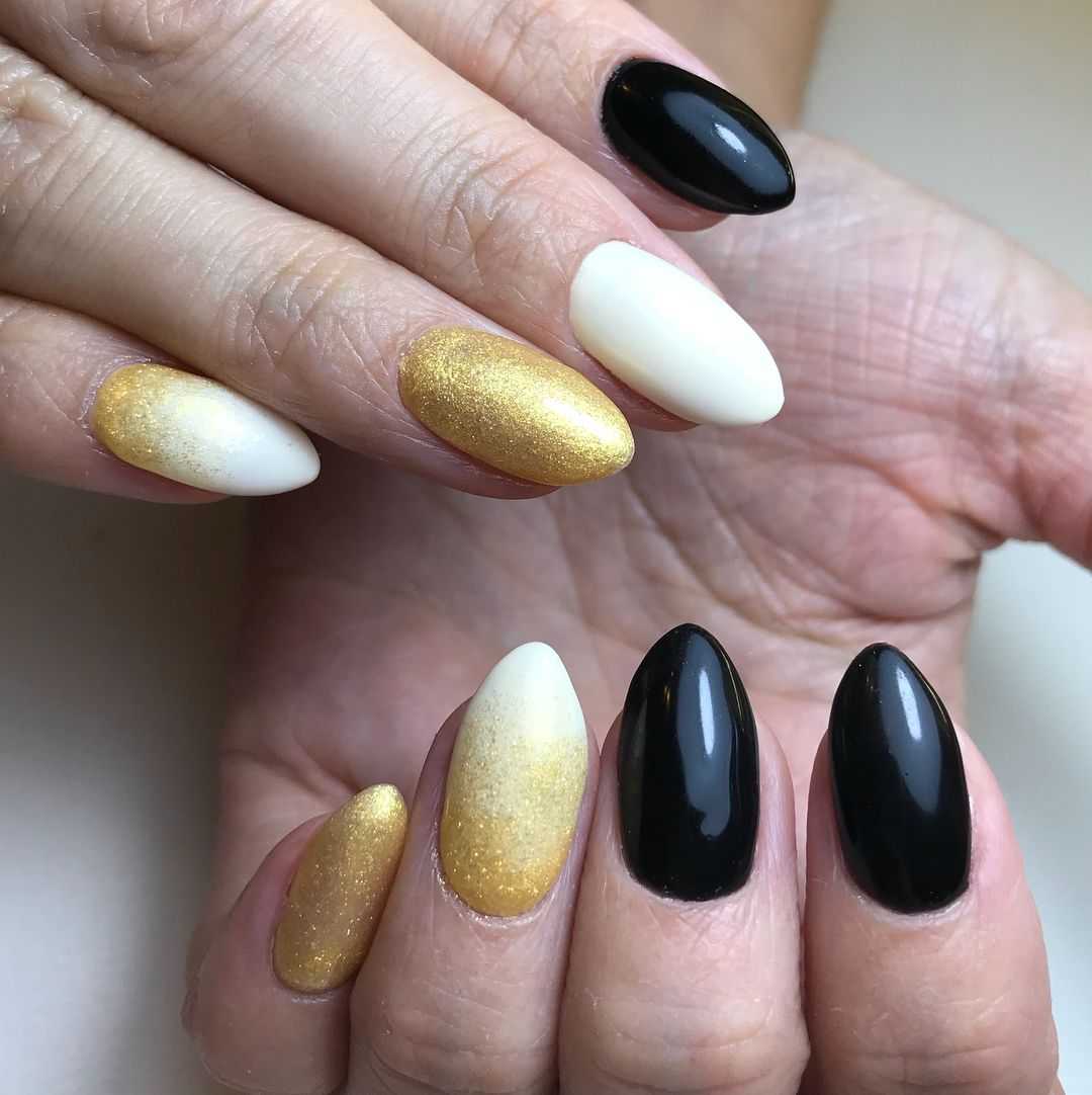 Черно-золотые модные цвета маникюра завоевали пристальное внимание модниц еще этой зимой. Такое сочетание выглядит изысканно, дорого и богато