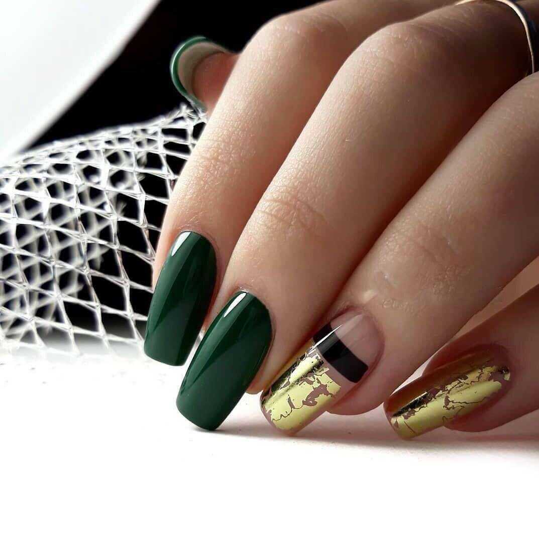Чёрный и золотой цвета обладают способностью не только очень выигрышно смотреться в сочетании между собой. Базовое тёмное покрытие очень красиво дополняется разнообразным золотистым декором. Наиболее популярным вариантом считается фольга, применение которой позволяет красиво украсить ногтевые пластины эффектными потёртостями или дополнить часть ноготка неповторимым узором.