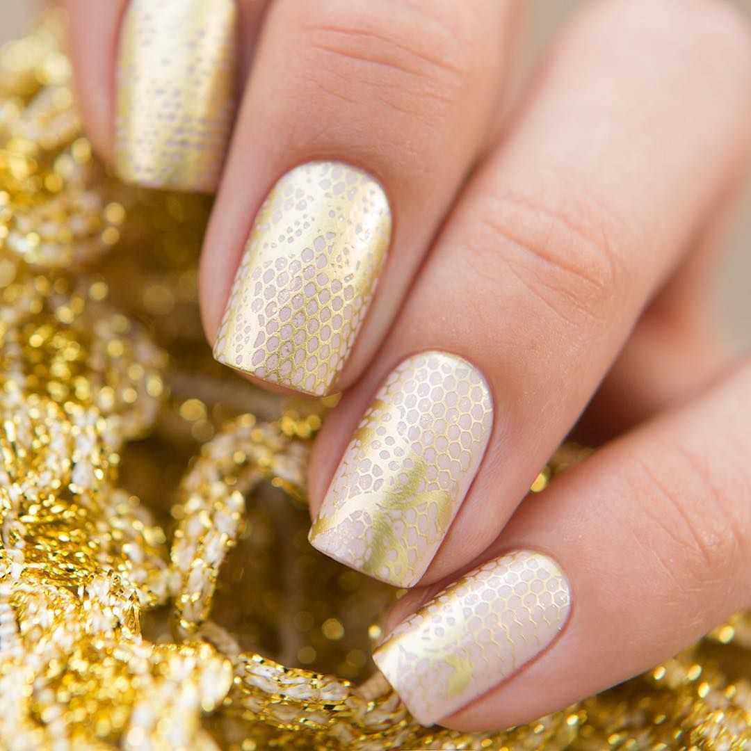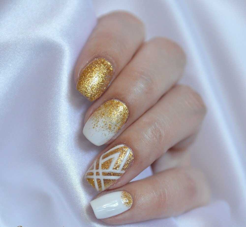 Модный маникюр с золотым дизайном