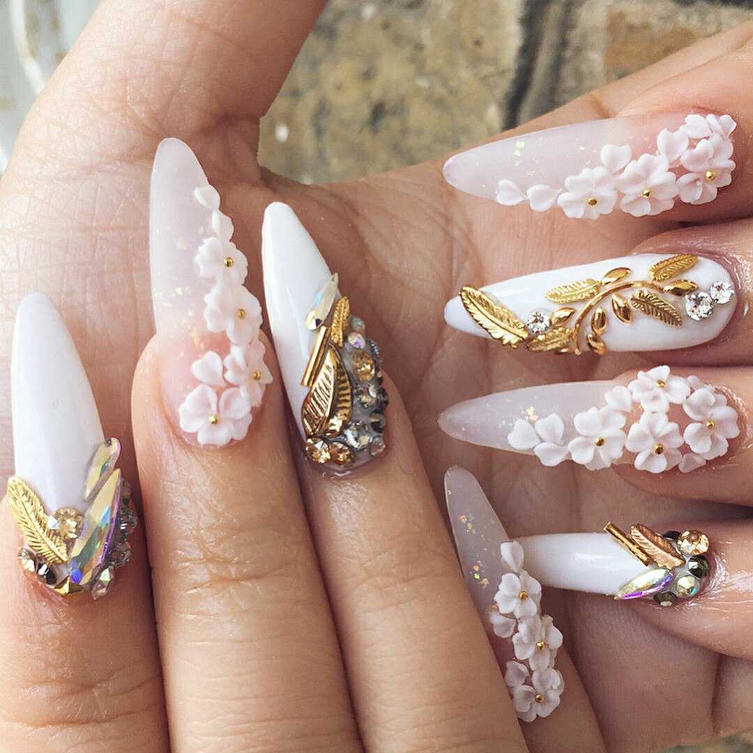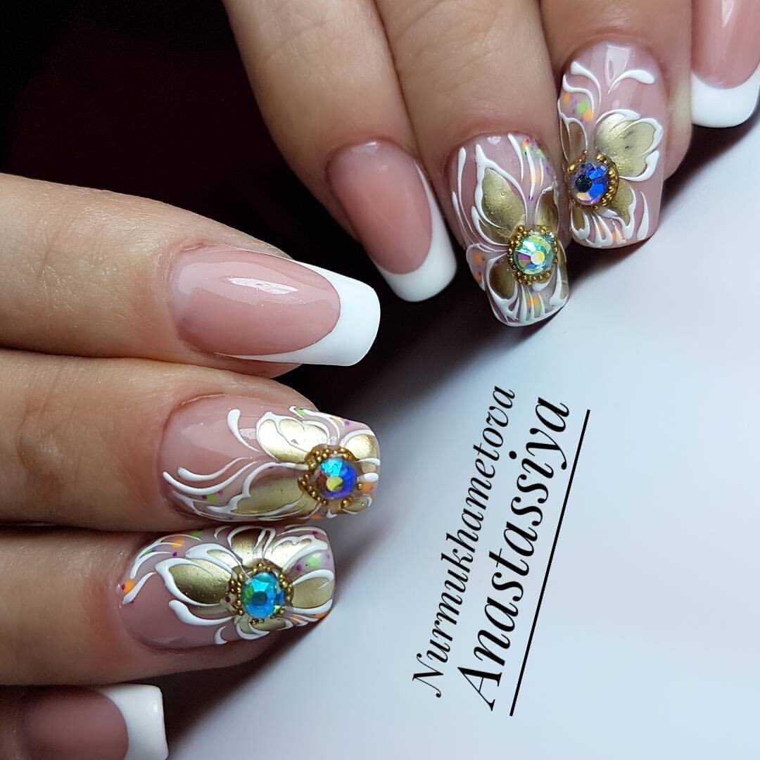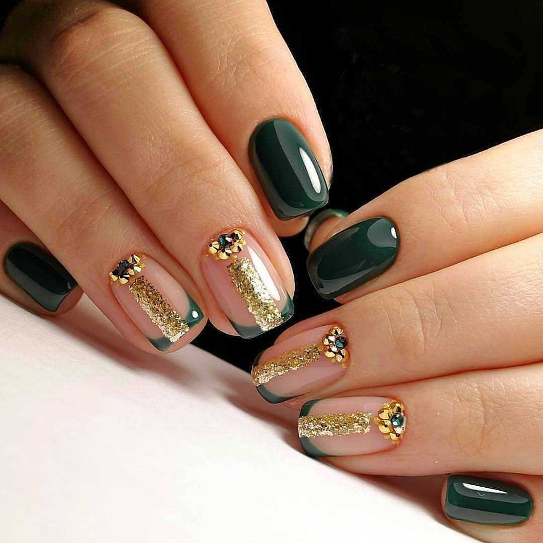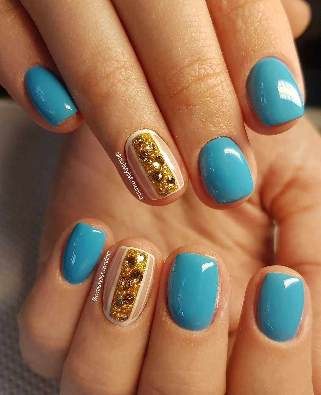 Яркие камни и небольшие бусинки золотого оттенка — неисчерпаемое поле для самых разных нейл-артов. Они могут быть строгими по форме или неповторимыми на каждом ноготке. Конечно, не стоит перегружать ежедневный маникюр обилием страз. А вот для праздничного можно выбрать любой из вариантов декора.