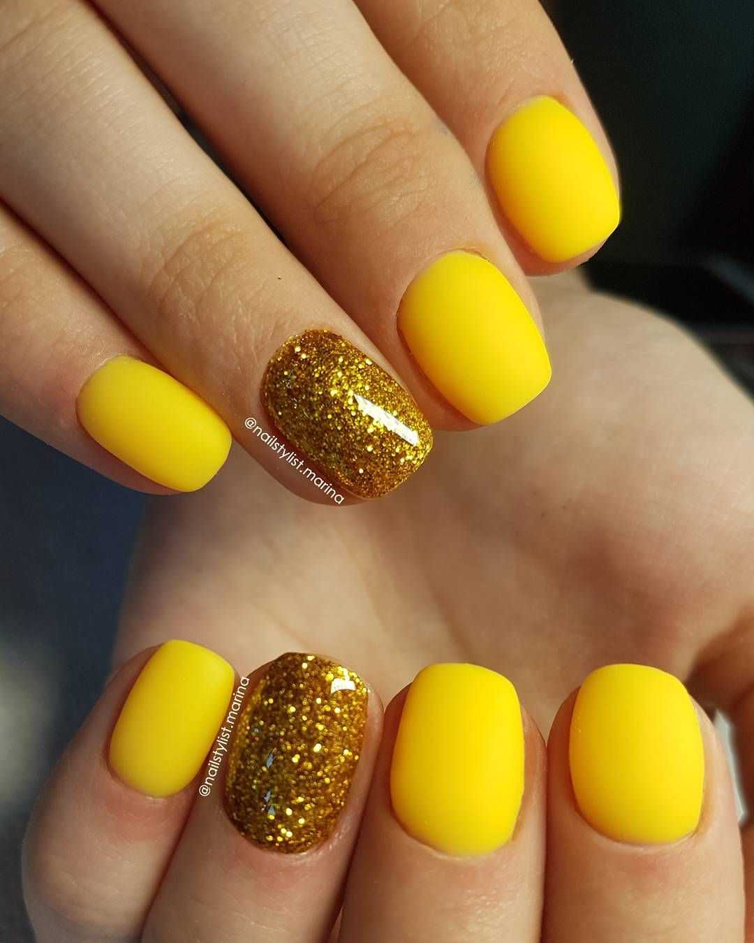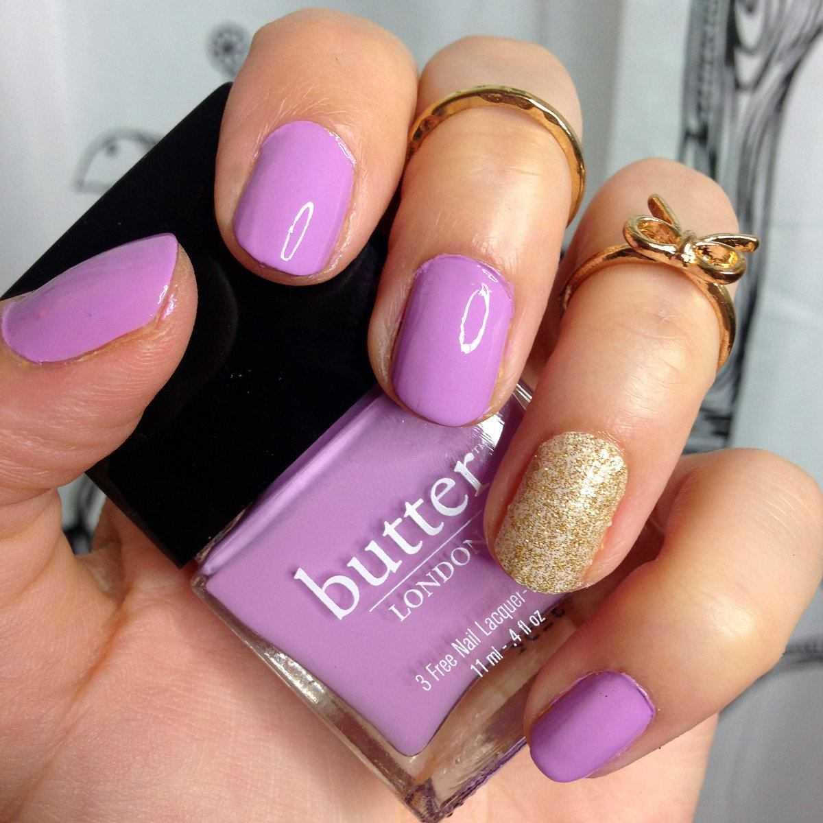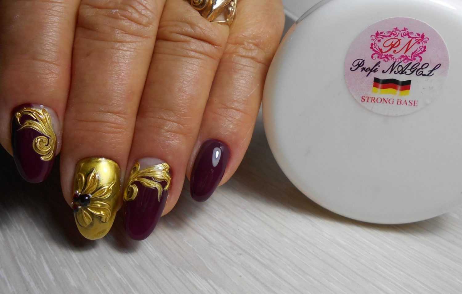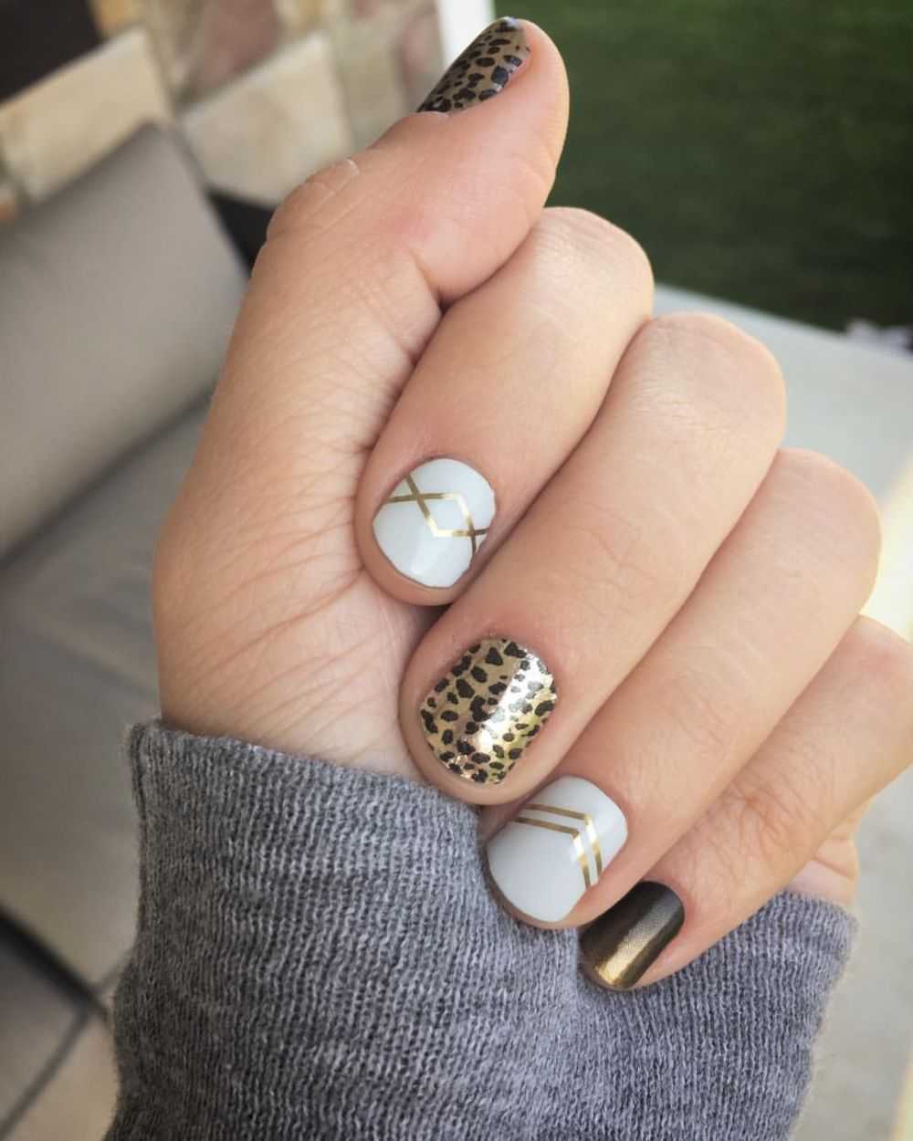 Задача дизайна на короткие ногти — не сделать пластину визуально еще короче. Отметим, что золотое покрытие может привести именно к такому эффекту.