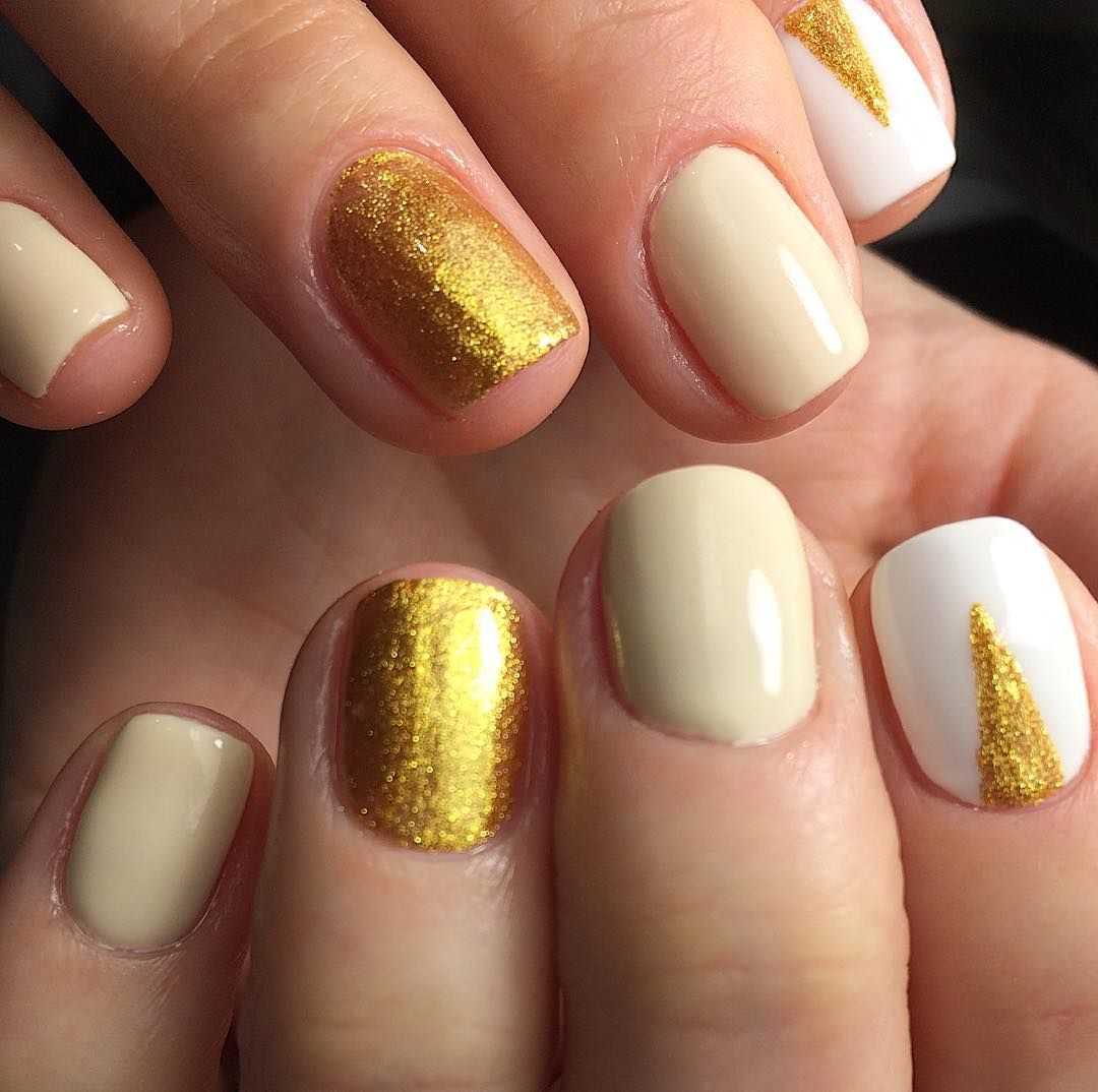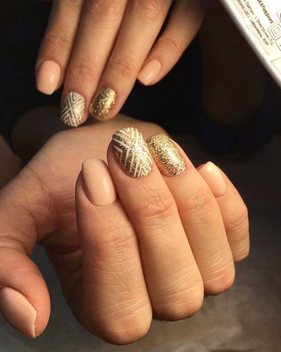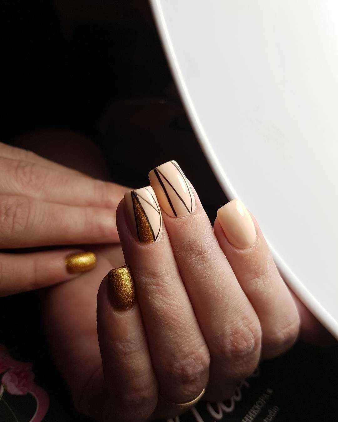 Модные дизайны ногтей беж с золотом