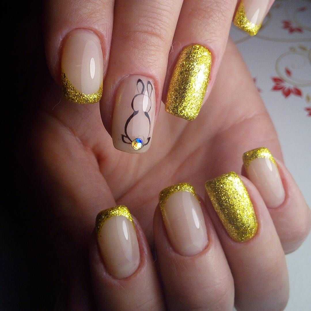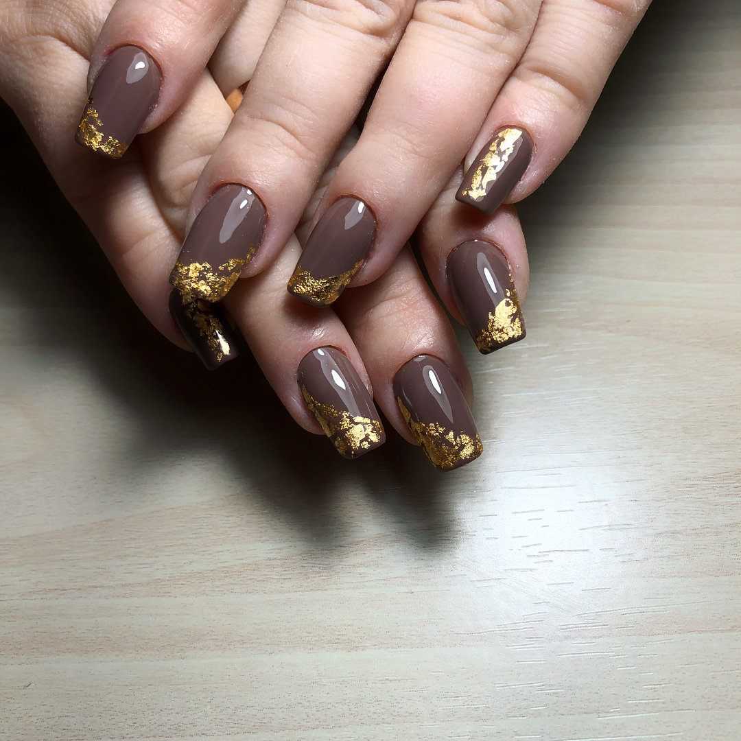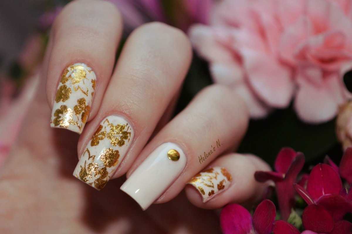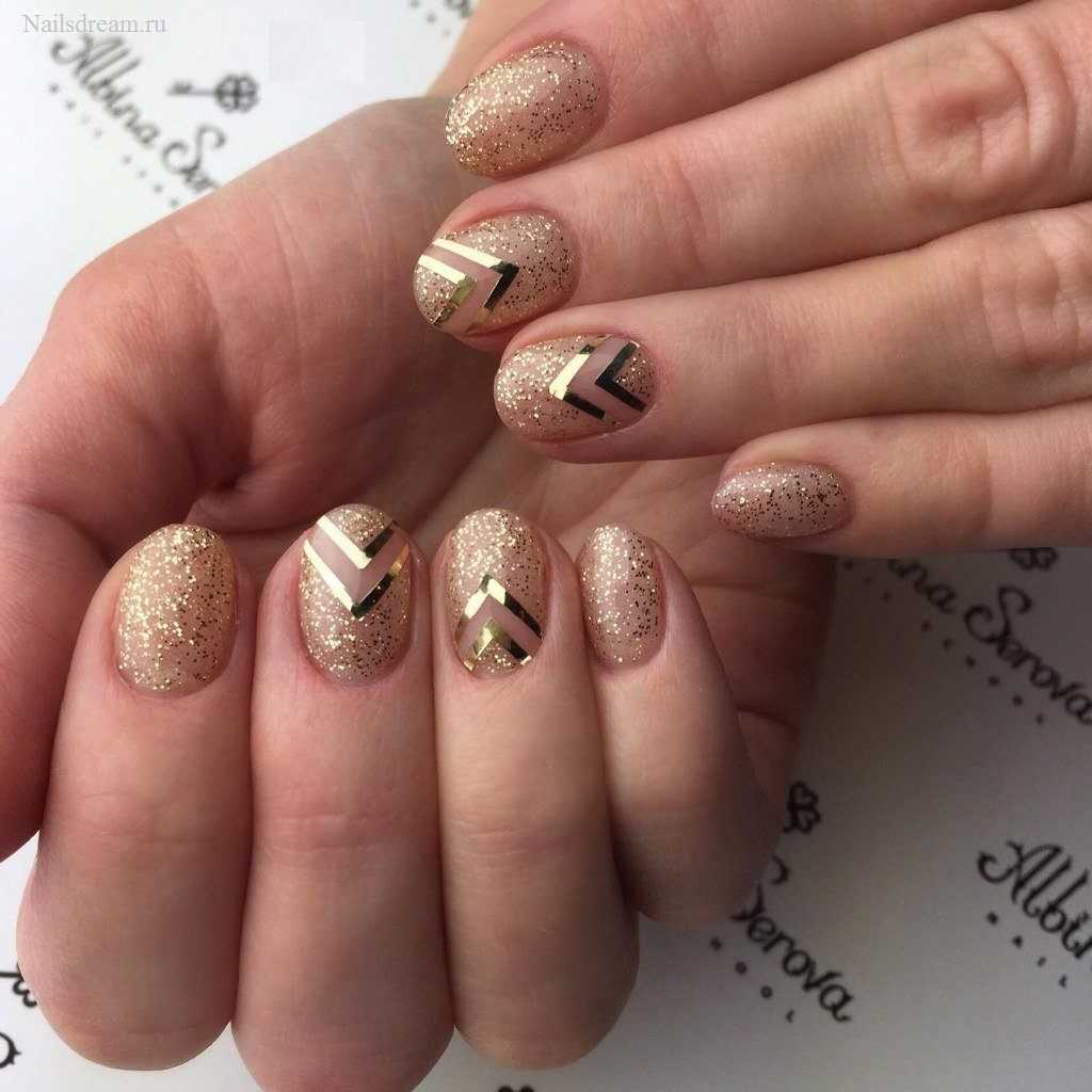 Модные дизайны ногтей беж с золотом