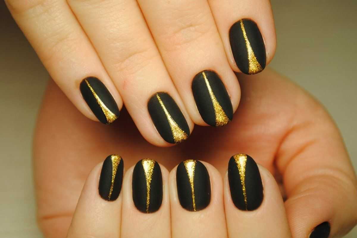 Черный маникюр с золотой полоской