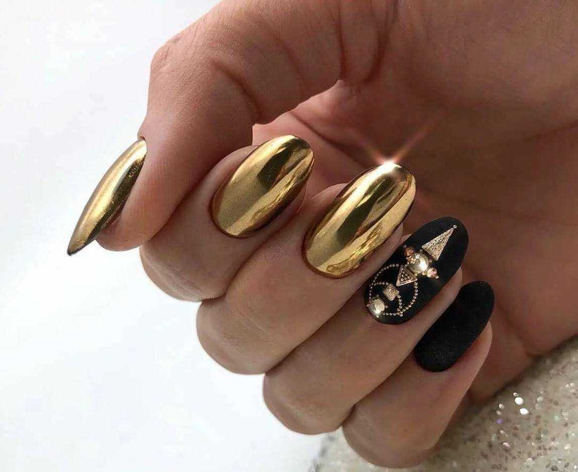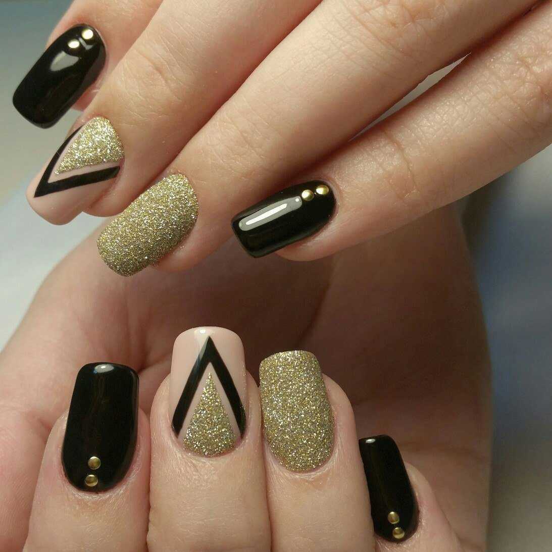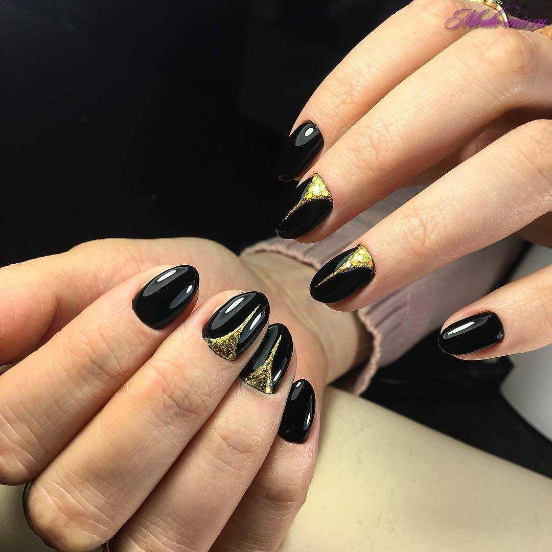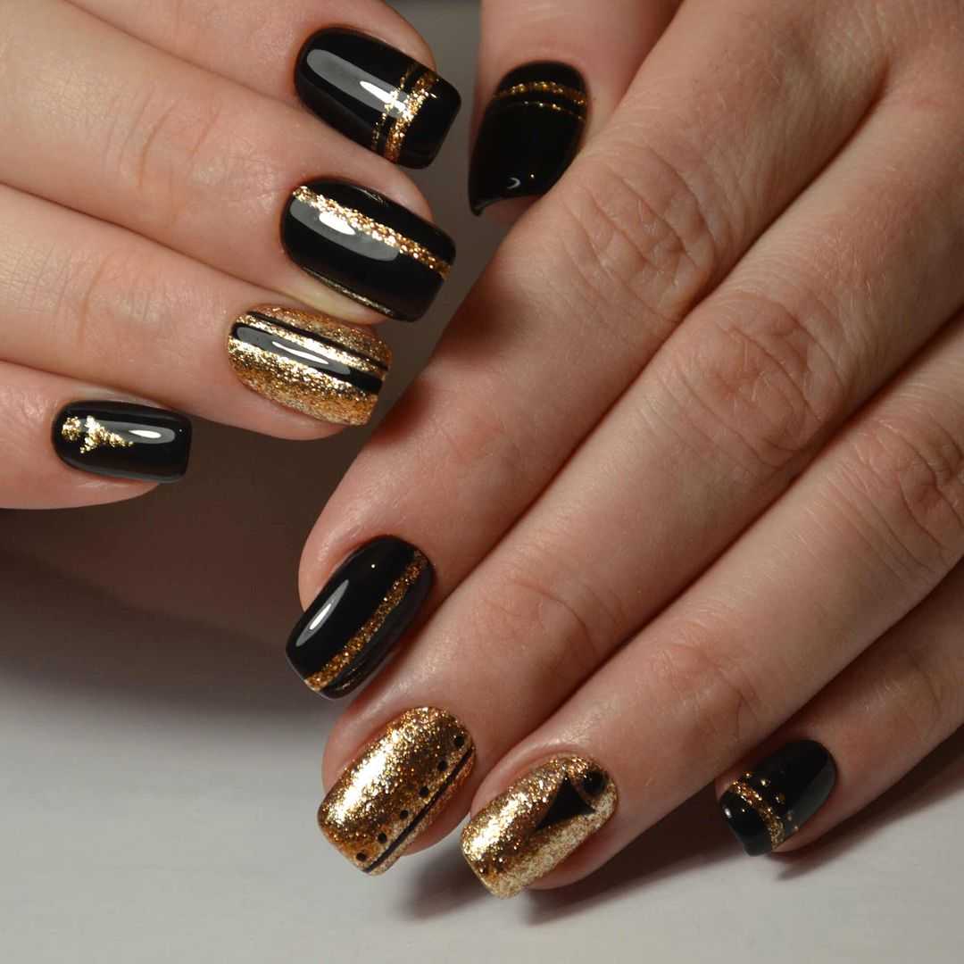 Оригинальные идеи чёрно-золотого маникюра с декором
