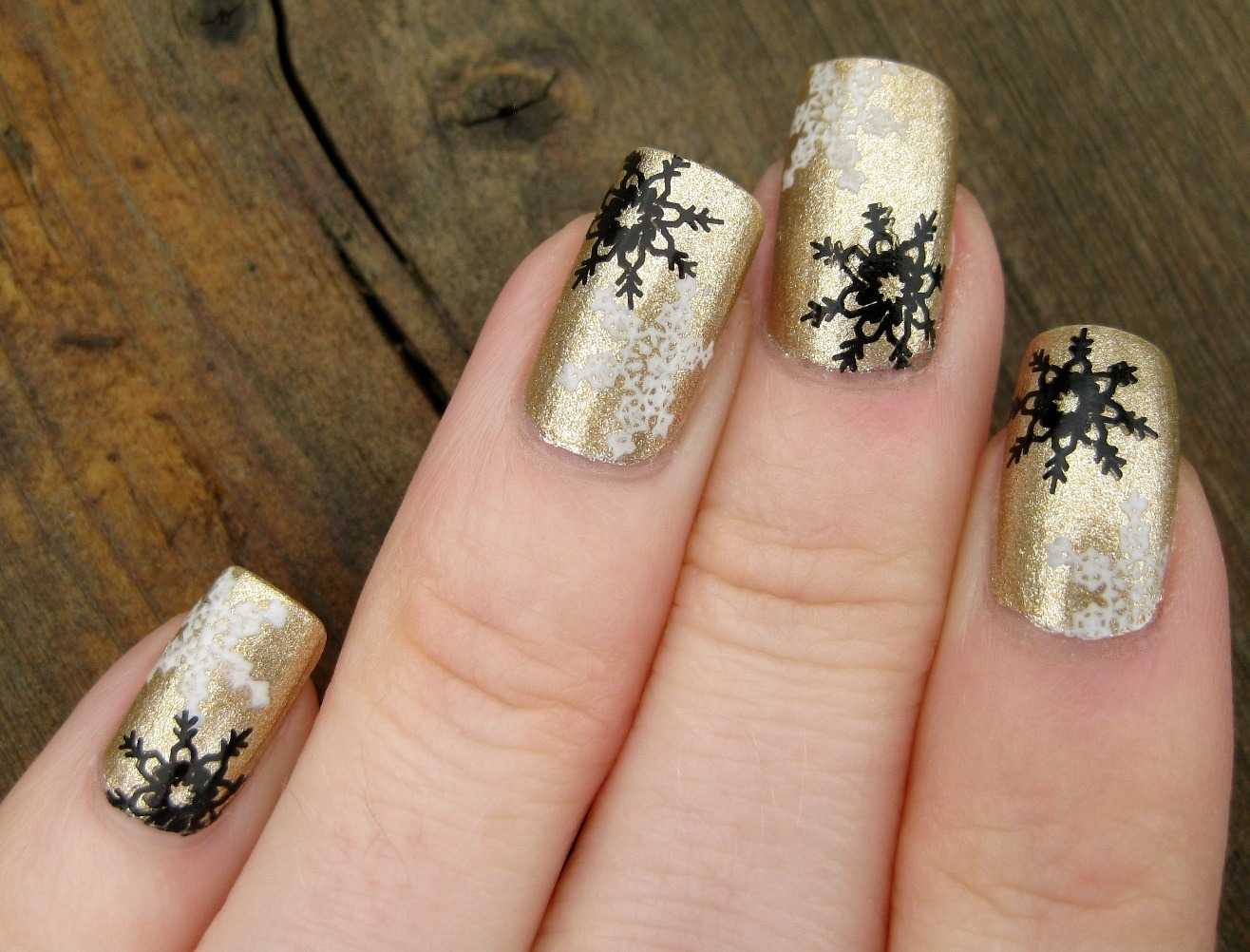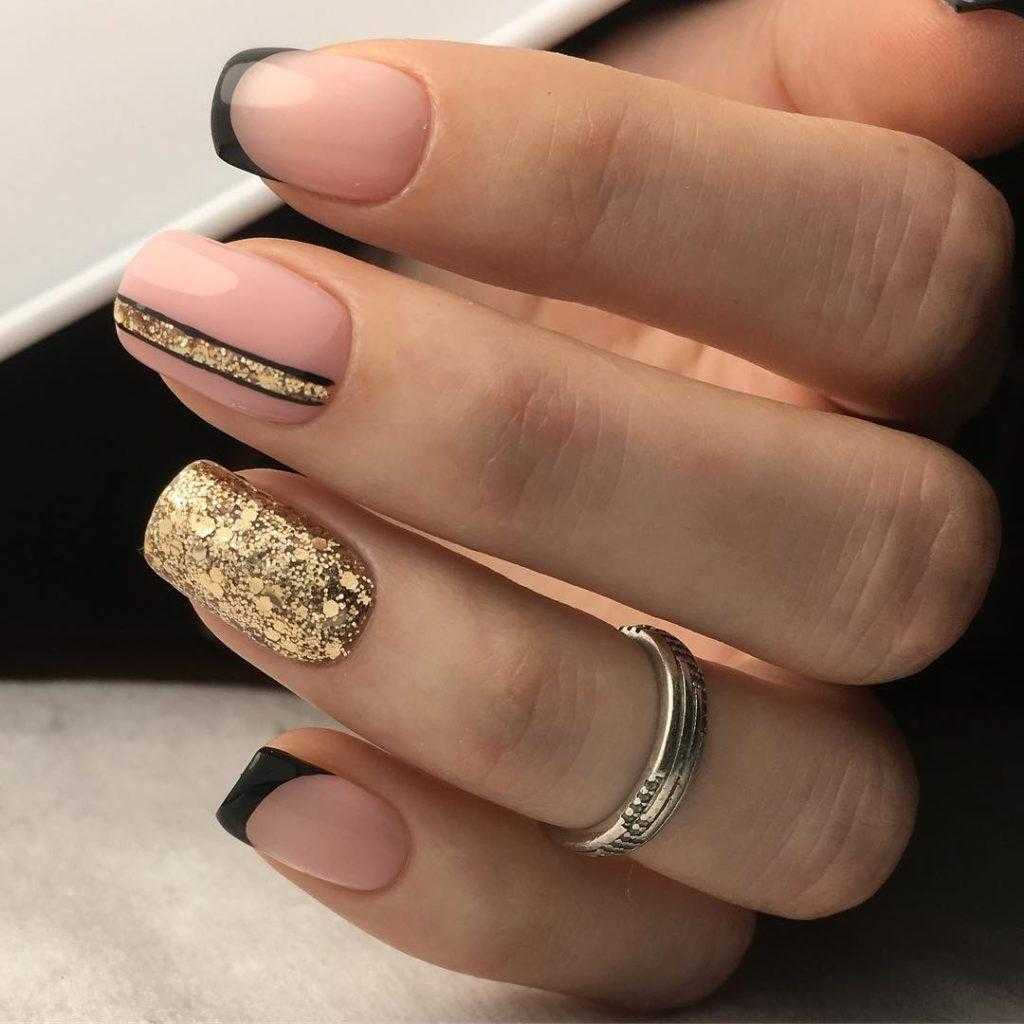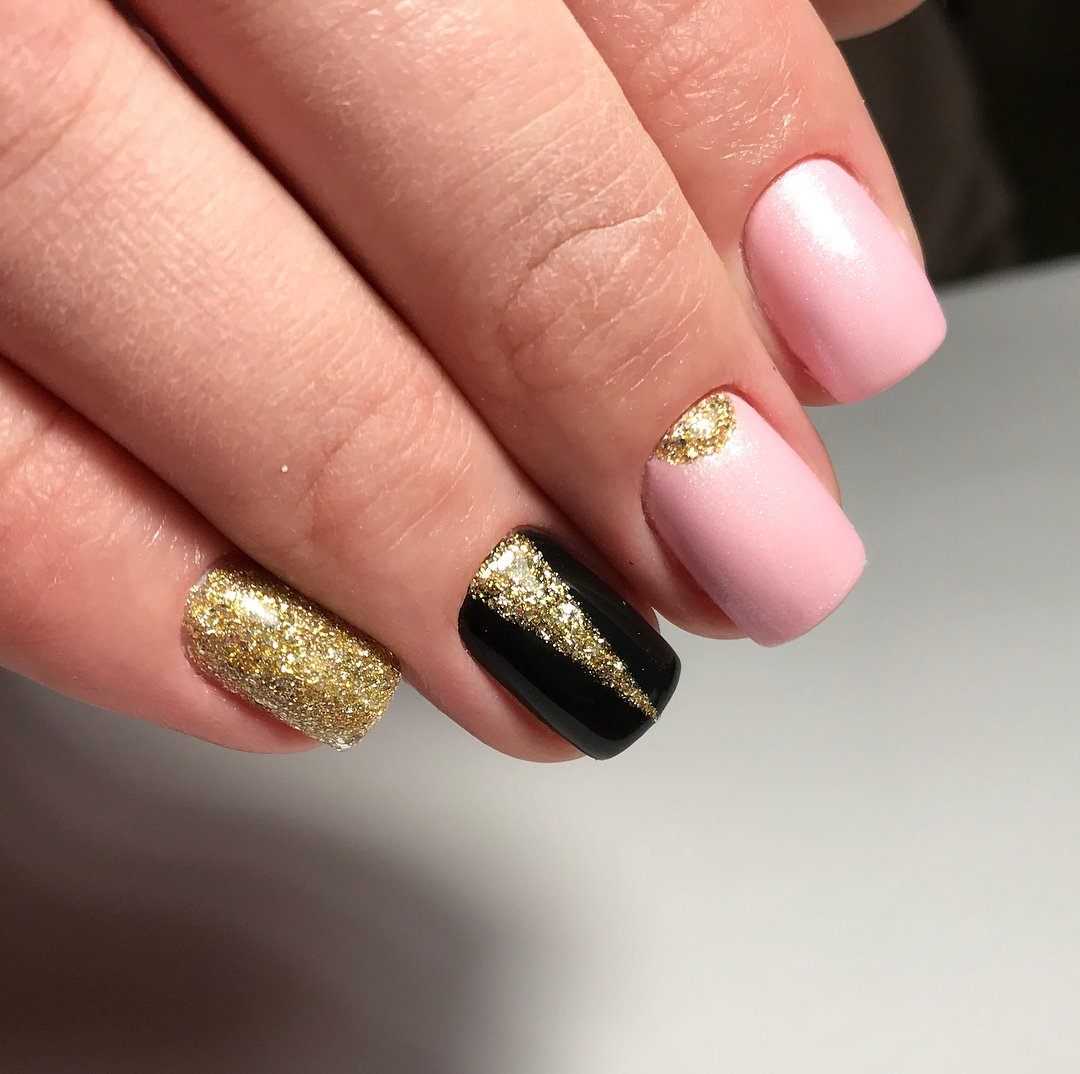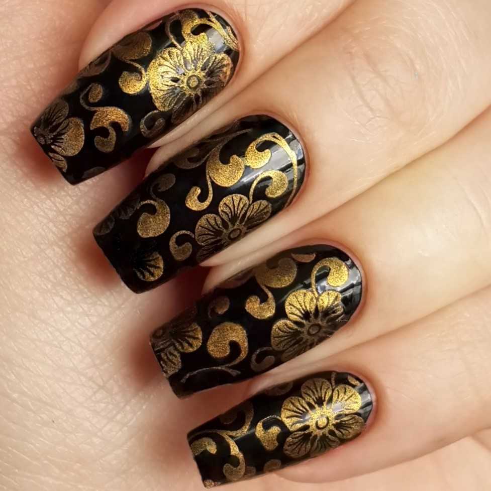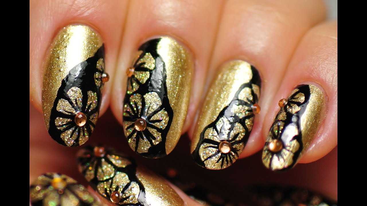 Оригинальные идеи чёрно-золотого маникюра с декором