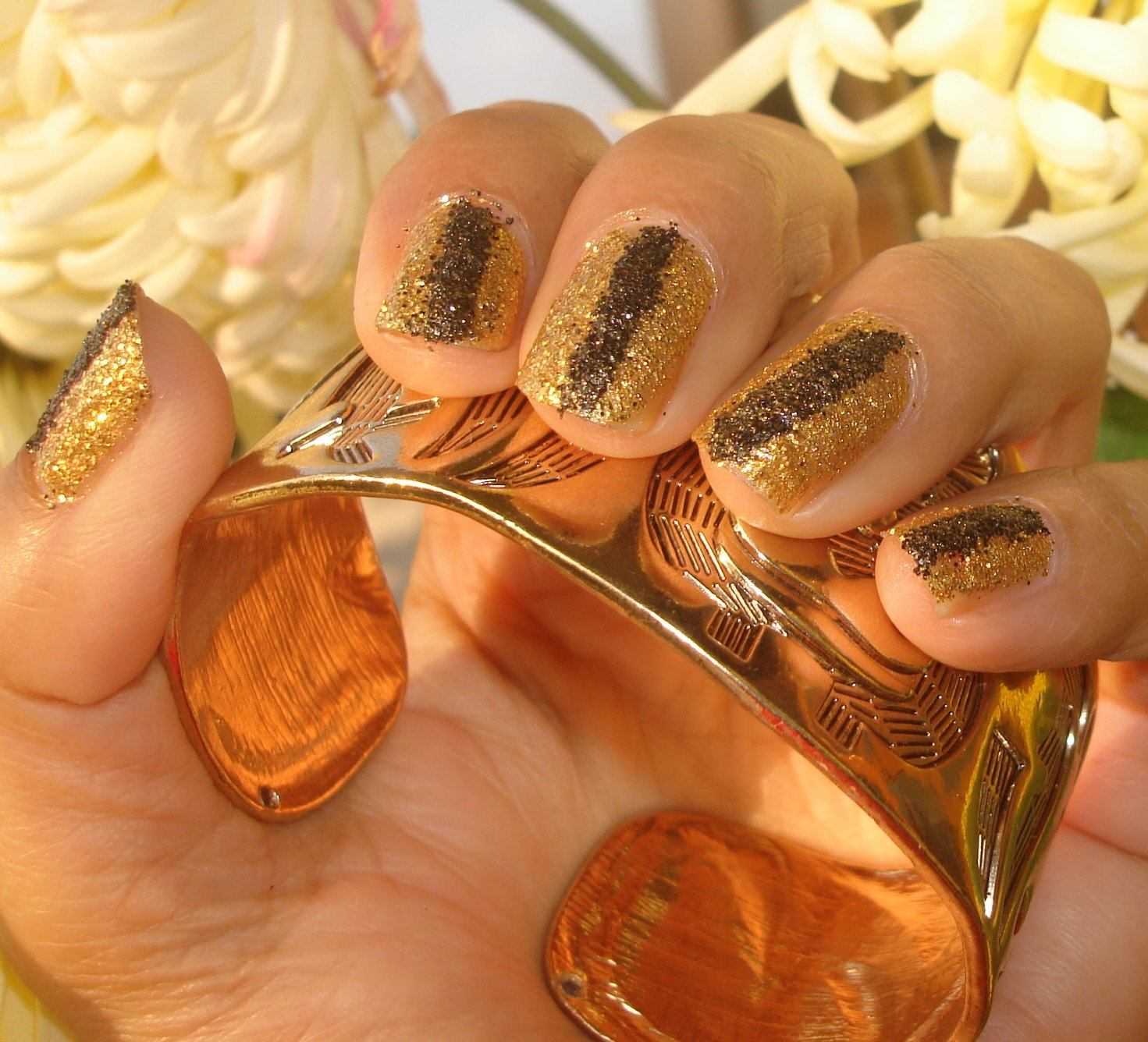 Золотые цветы глиттером